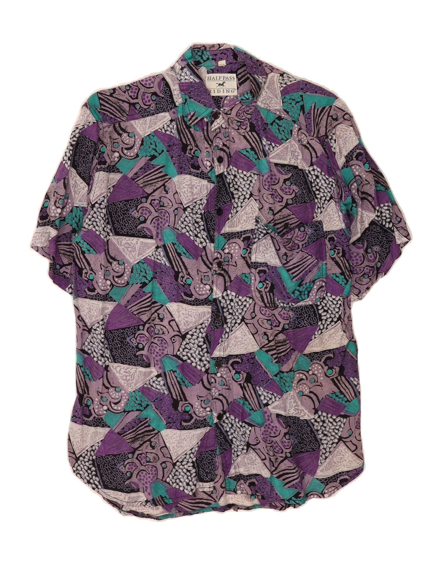 VINTAGE Mens Short Sleeve Shirt XL Purple Geometric Rayon