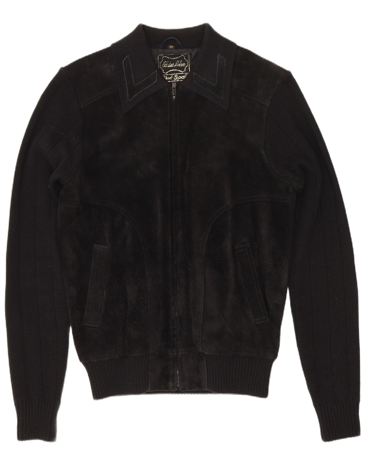 VINTAGE Chaqueta bomber de ante para hombre EU 50 Cuero negro grande