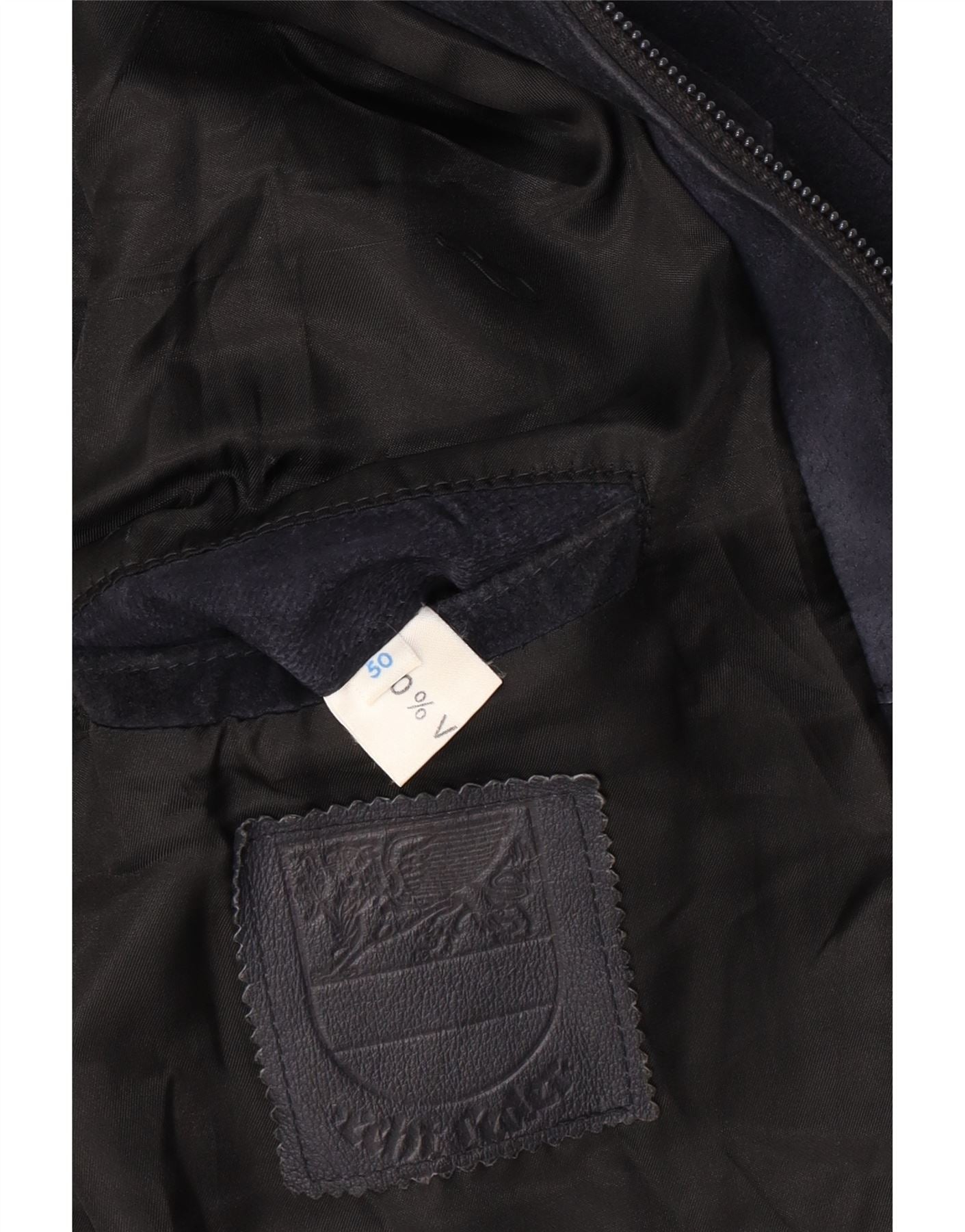 VINTAGE Chaqueta bomber de ante para hombre IT 50 Cuero azul marino grande