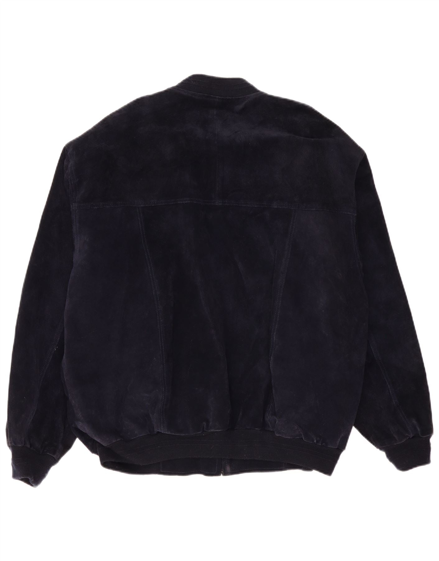 VINTAGE Chaqueta bomber de ante para hombre IT 54 2XL Cuero azul marino