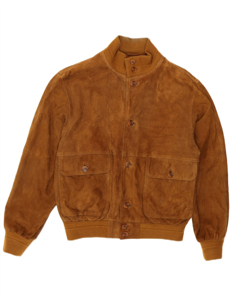 VINTAGE Chaqueta bomber de ante para hombre Reino Unido 38 Cuero beige medio