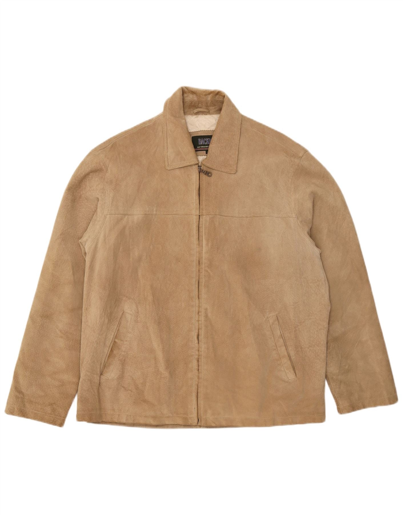 VINTAGE Chaqueta de ante para hombre Reino Unido 38 Cuero beige medio