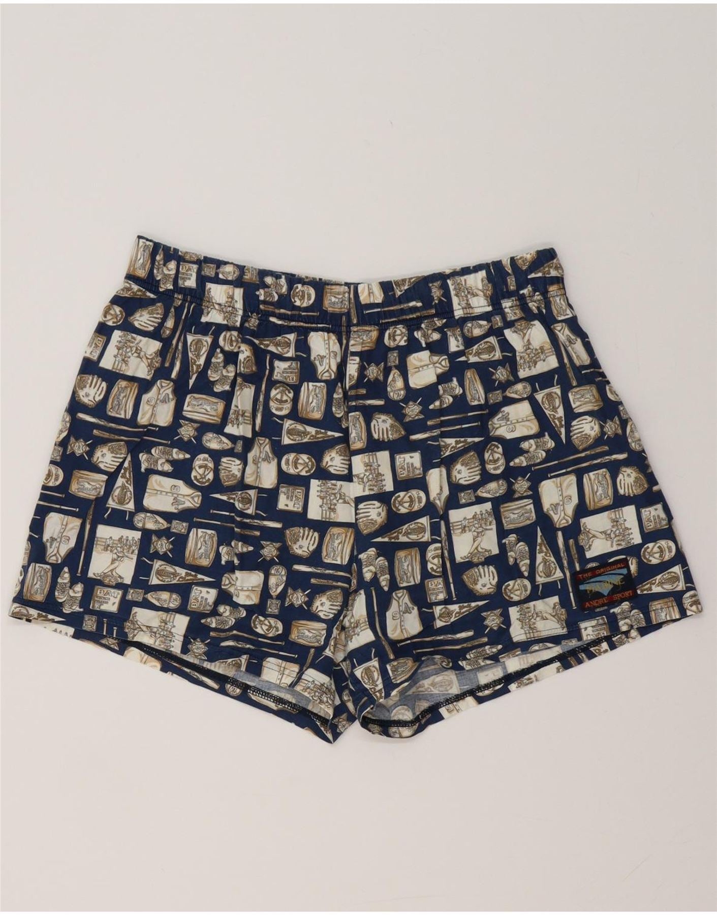 VINTAGE pantalones cortos de natación para hombre grande azul marino geométrico