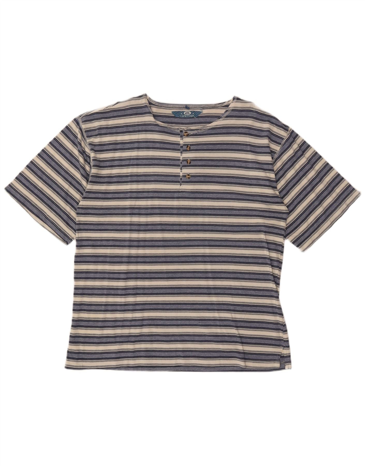 VINTAGE Camiseta Hombre Top XL Algodón Rayas Azul Marino