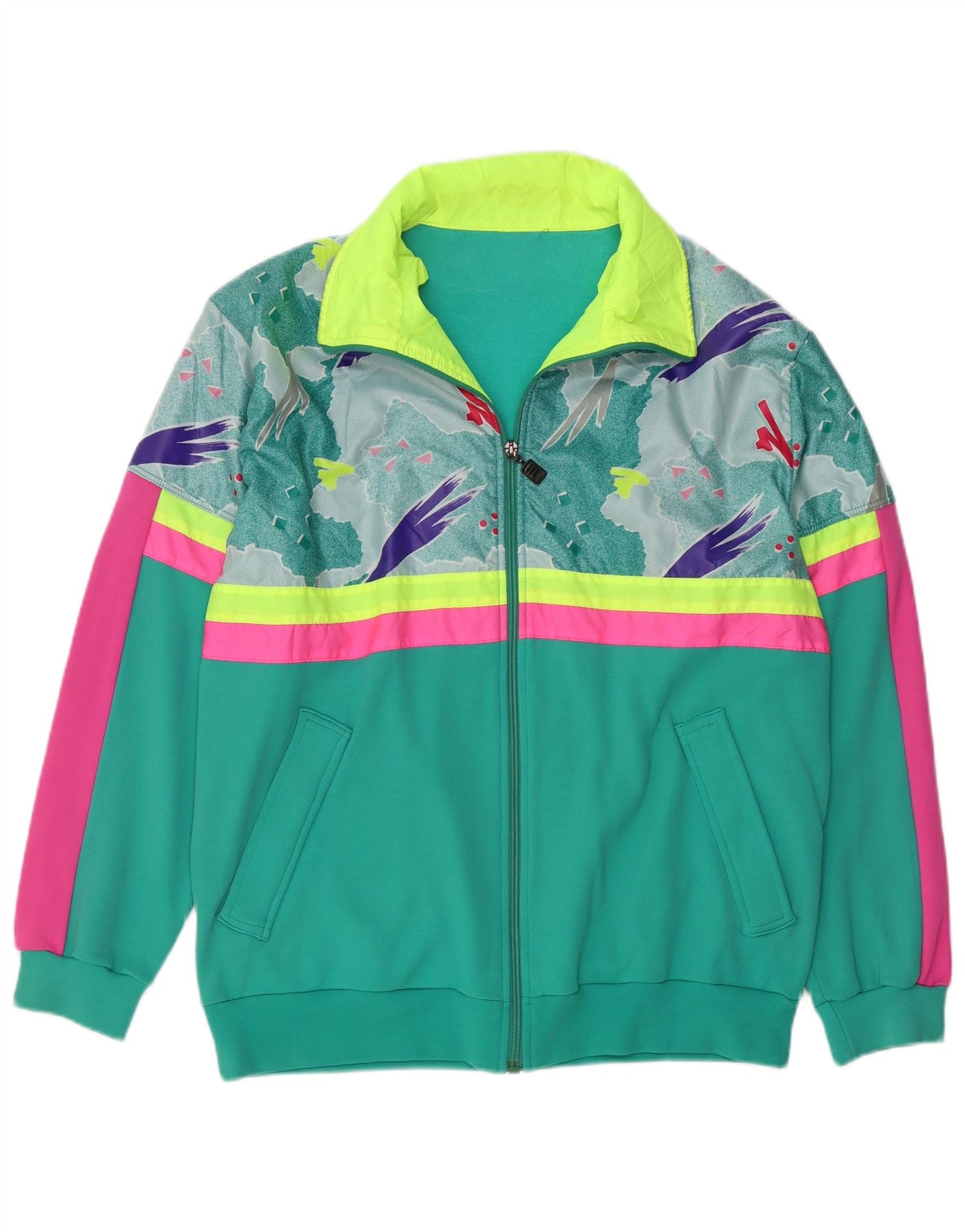 VINTAGE Hombres Chándal Top Chaqueta Grande Verde Geométrico
