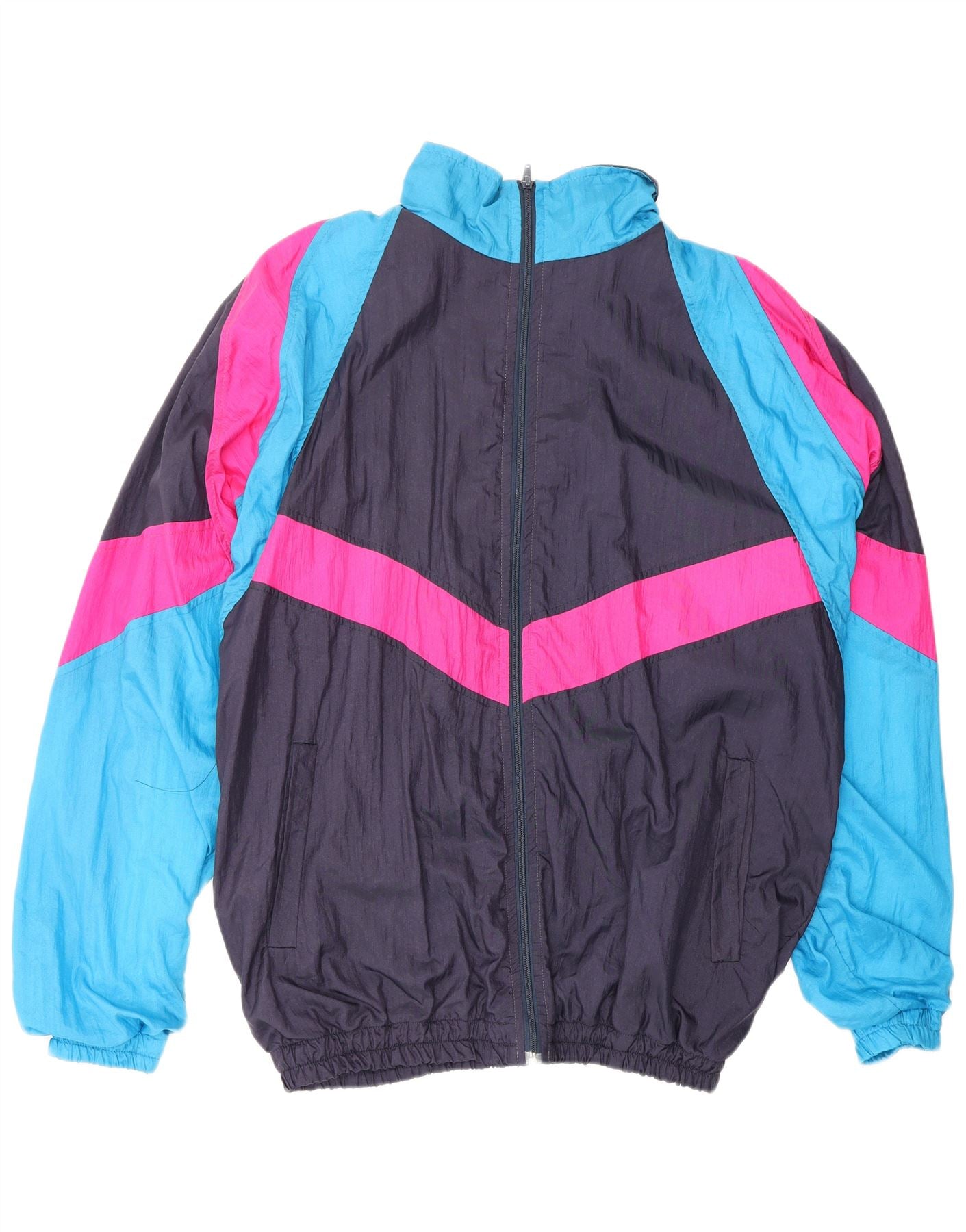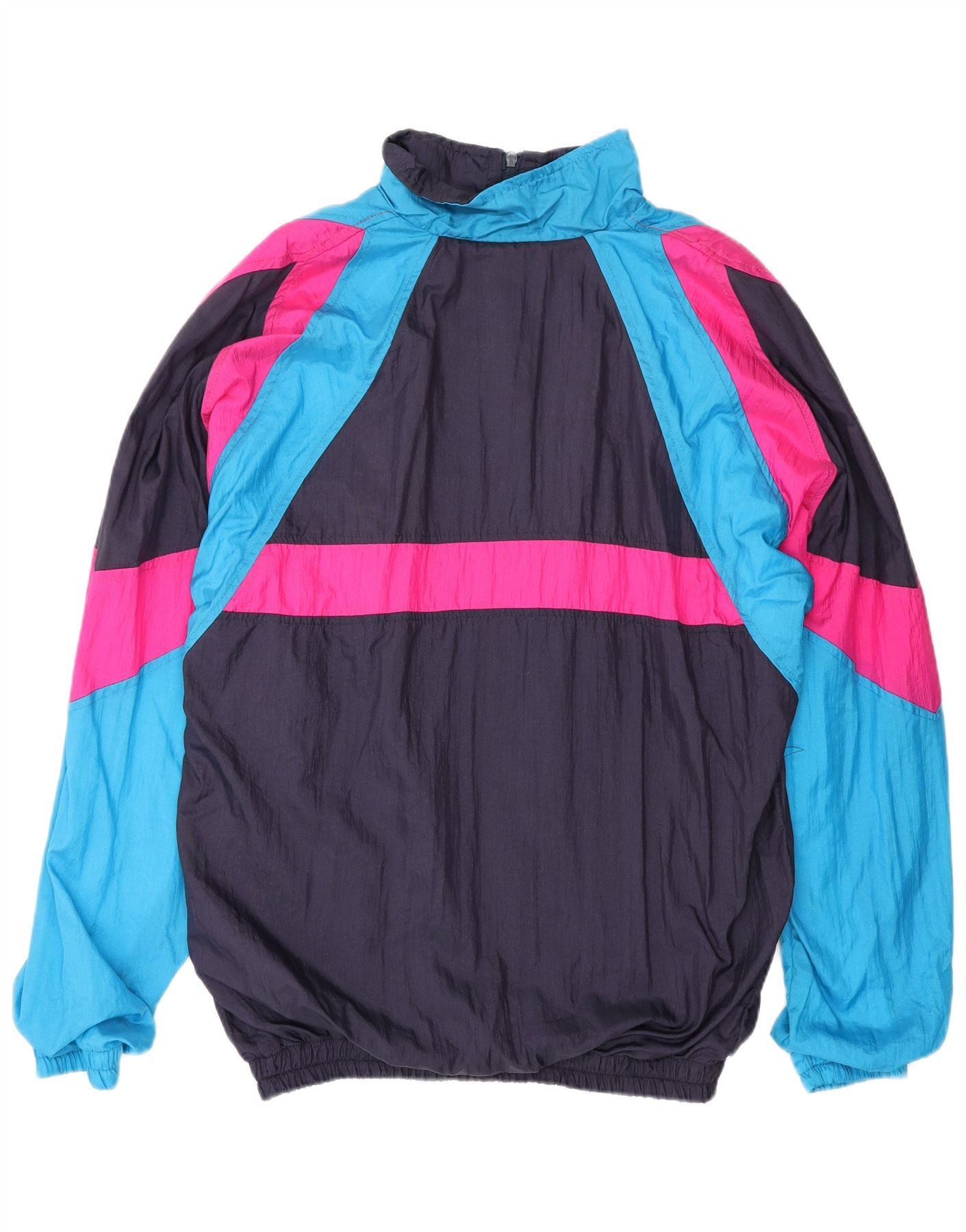 VINTAGE Hombres Chándal Top Chaqueta Reino Unido 44 XL Azul Marino Colorblock Algodón