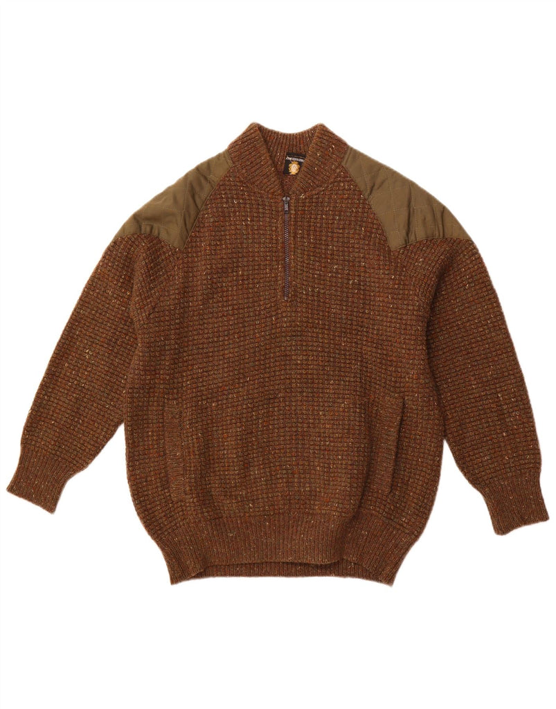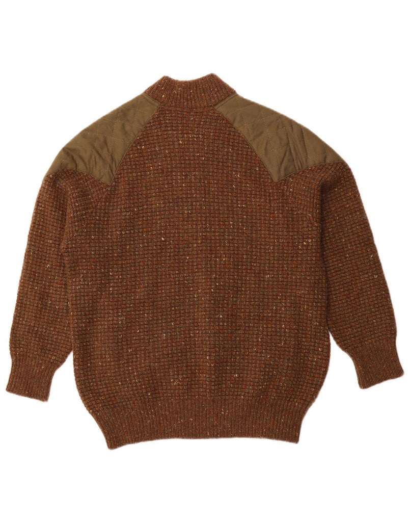 VINTAGE Jersey de cuello alto para hombre IT 52 Lana moteada marrón grande