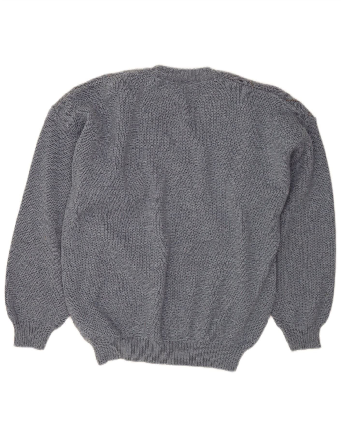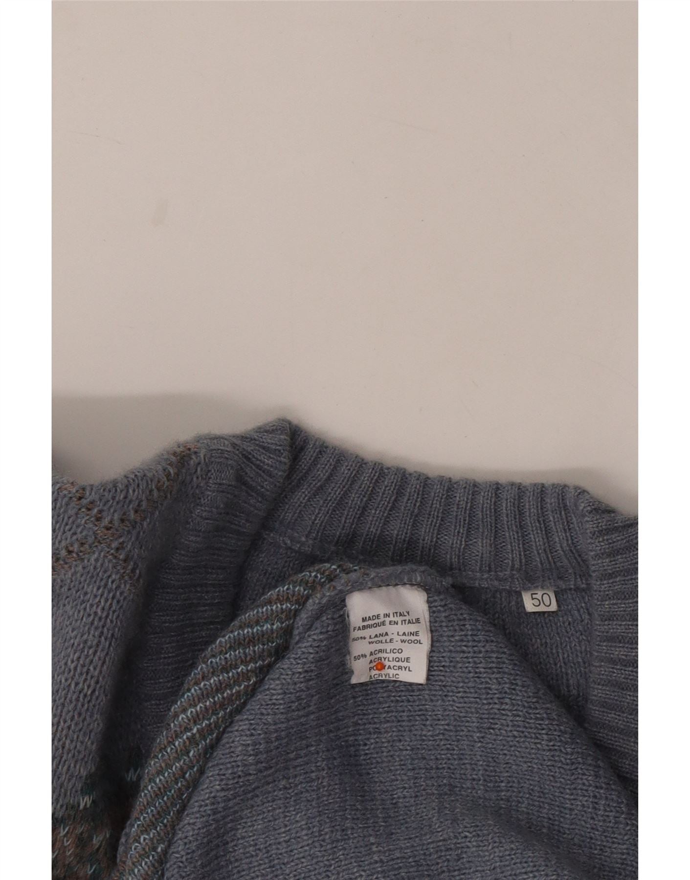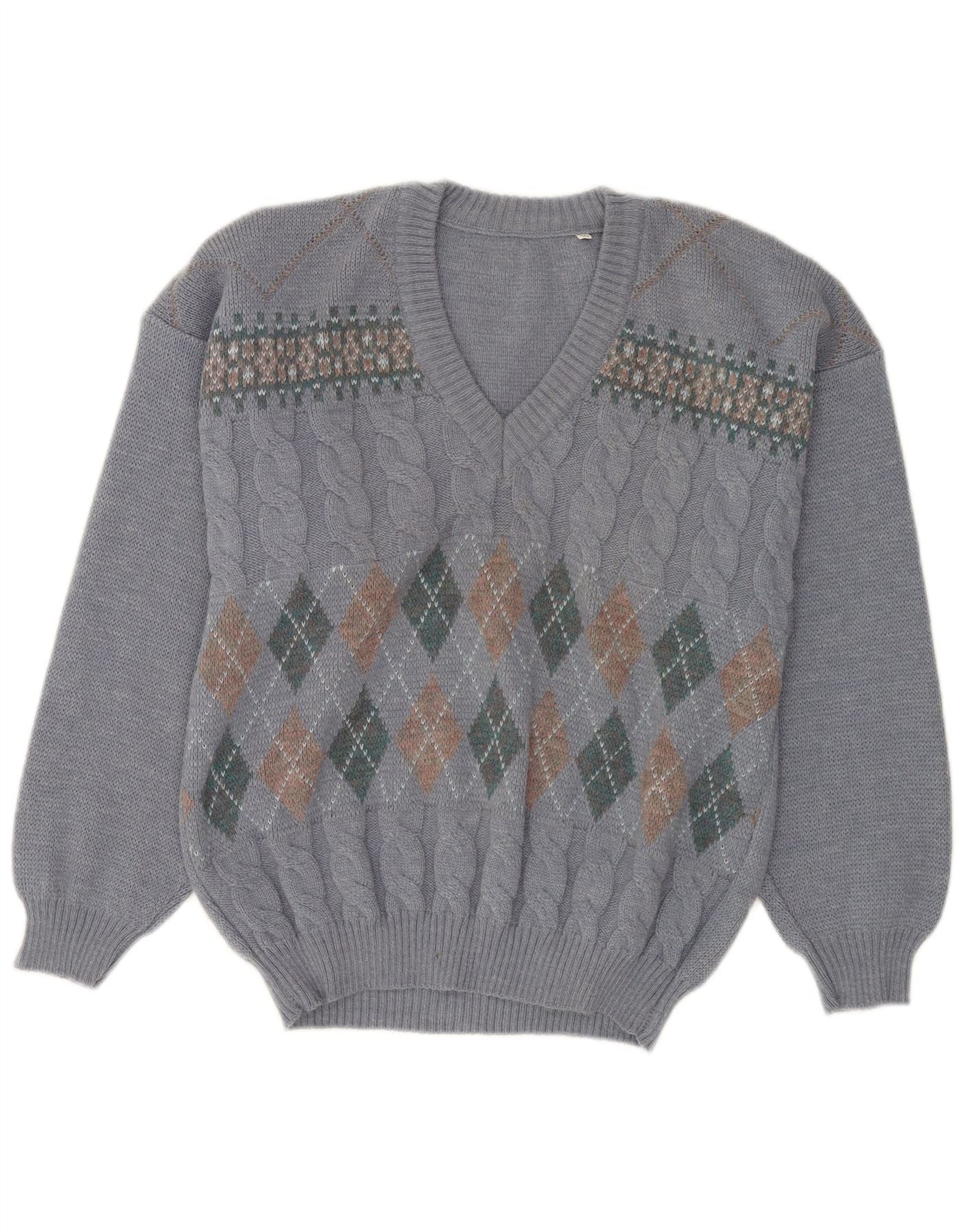 VINTAGE Jersey con cuello en V para hombre IT 50 Azul medio Argyle/Lana de diamante