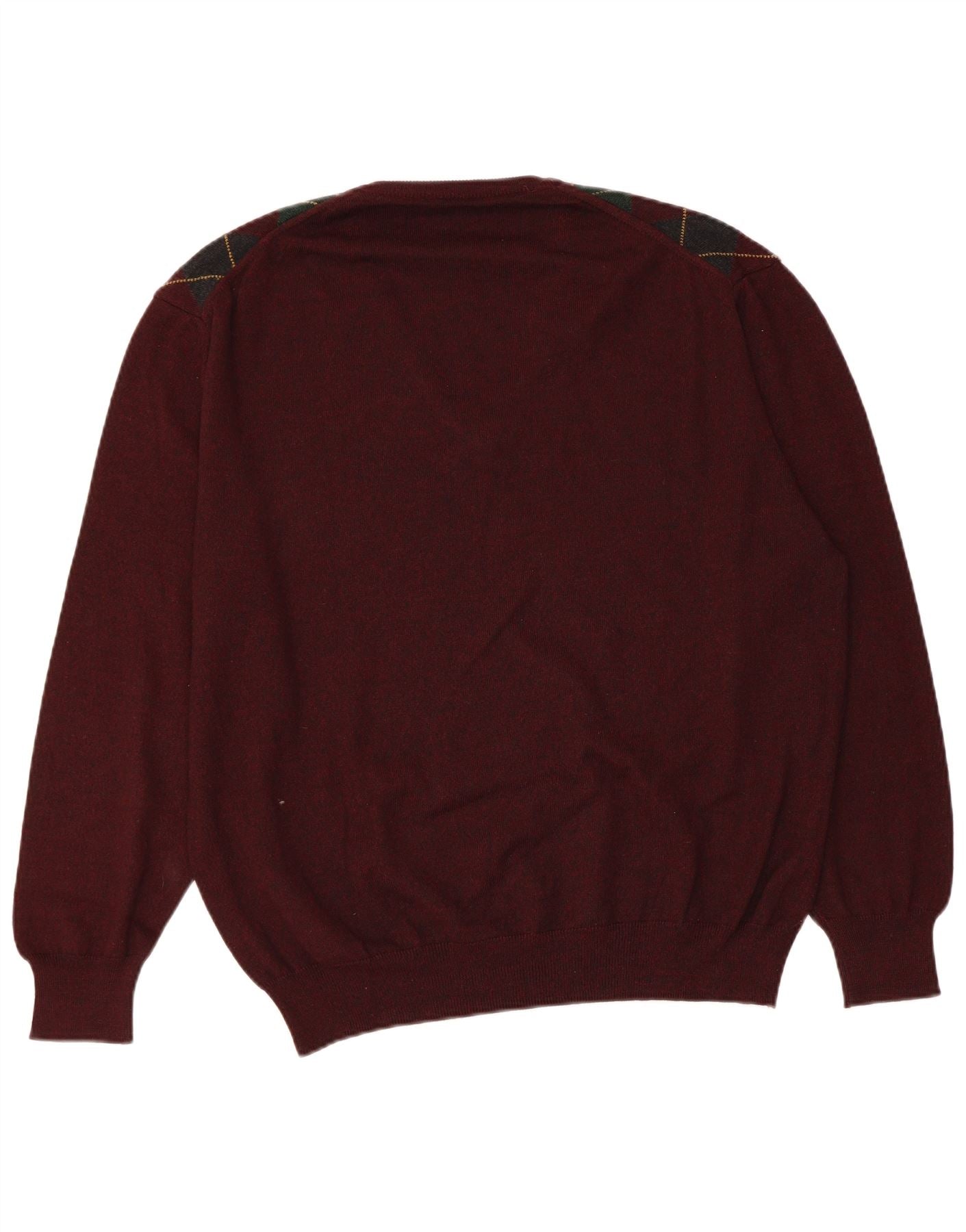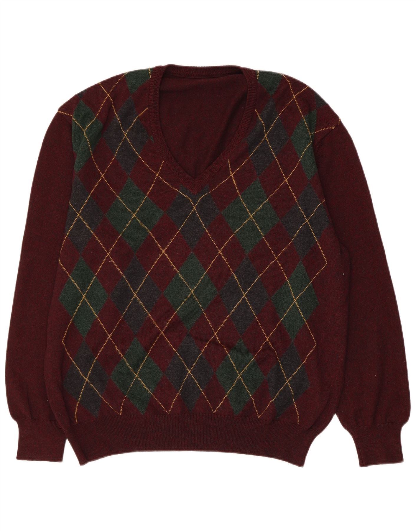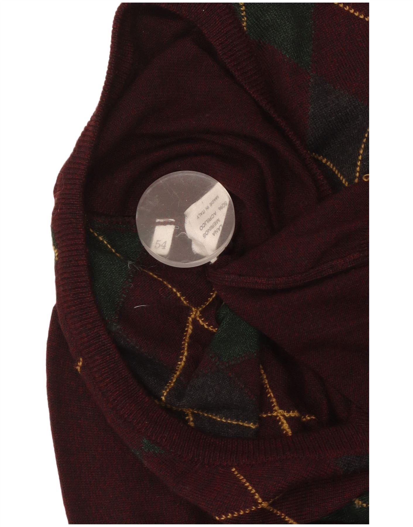 VINTAGE Jersey con cuello en V para hombre IT 54 XL Maroon Argyle/Diamond Wool