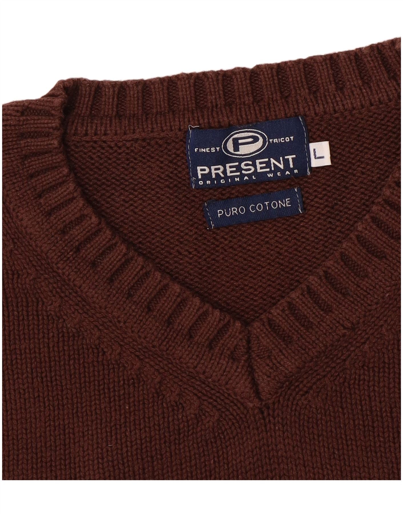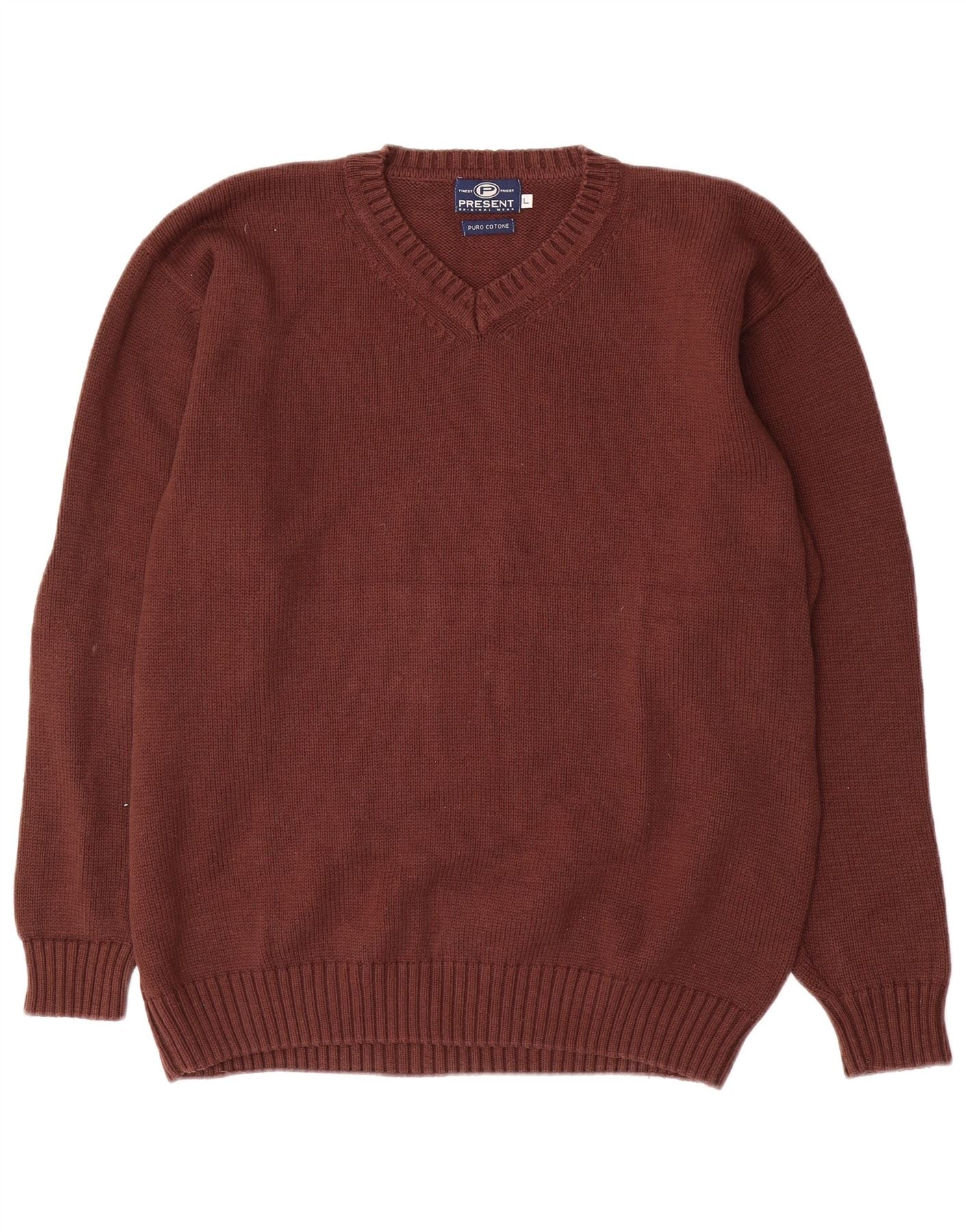VINTAGE Hombres V-Cuello Jumper Suéter Grande Algodón Marrón