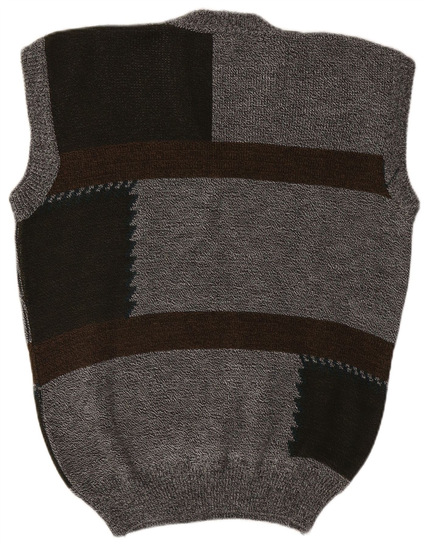 VINTAGE Chaleco para hombre Camiseta sin mangas Gris medio Colorblock Acrílico