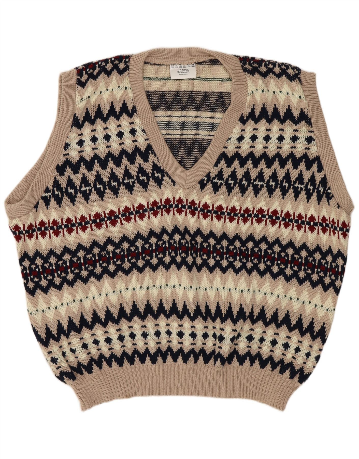 VINTAGE Chaleco para hombre Camiseta sin mangas Reino Unido 44/46 XL Azul Marino Fair Isle Acrílico