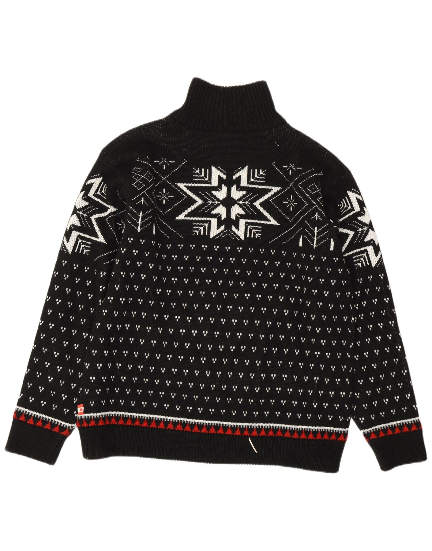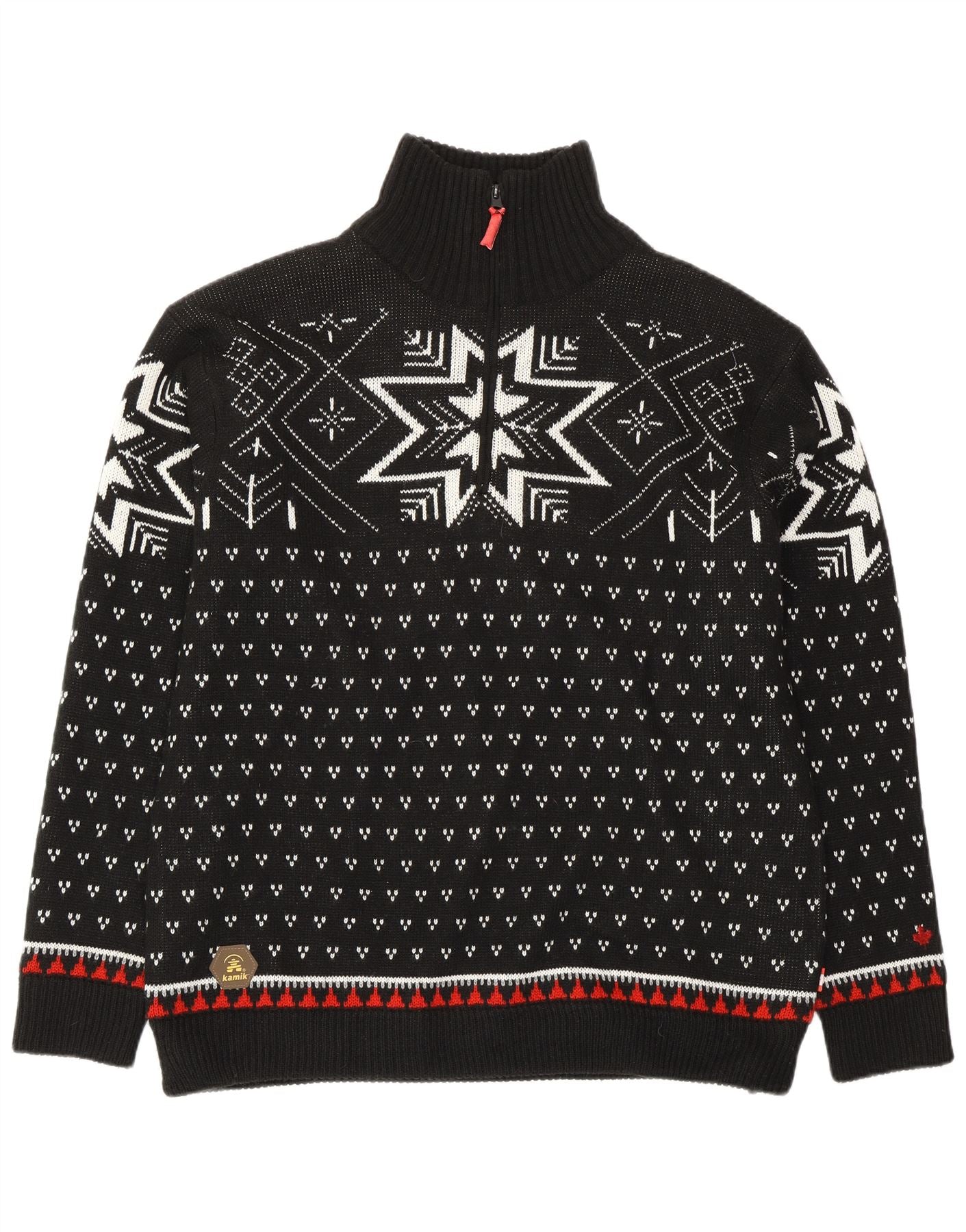 VINTAGE Hombres Zip Neck Jumper Suéter Medio Negro Fair Isle Poliacrílico