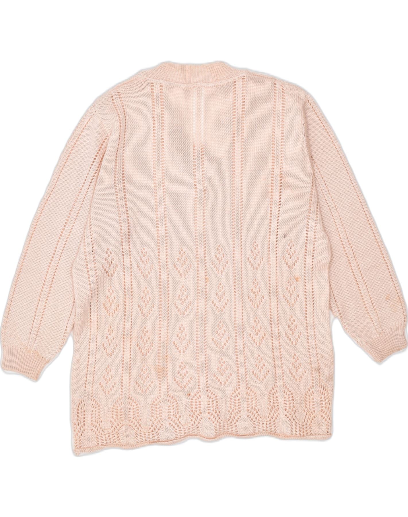 VINTAGE Mujer 3/4 Manga V-Cuello Jersey Suéter Reino Unido 14 Algodón Rosa Grande