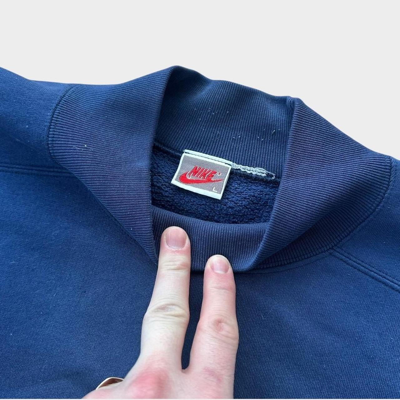 Sudadera Nike vintage de finales de los 80 y principios de los 90 con cuello simulado en azul marino y logotipo bordado en el pecho