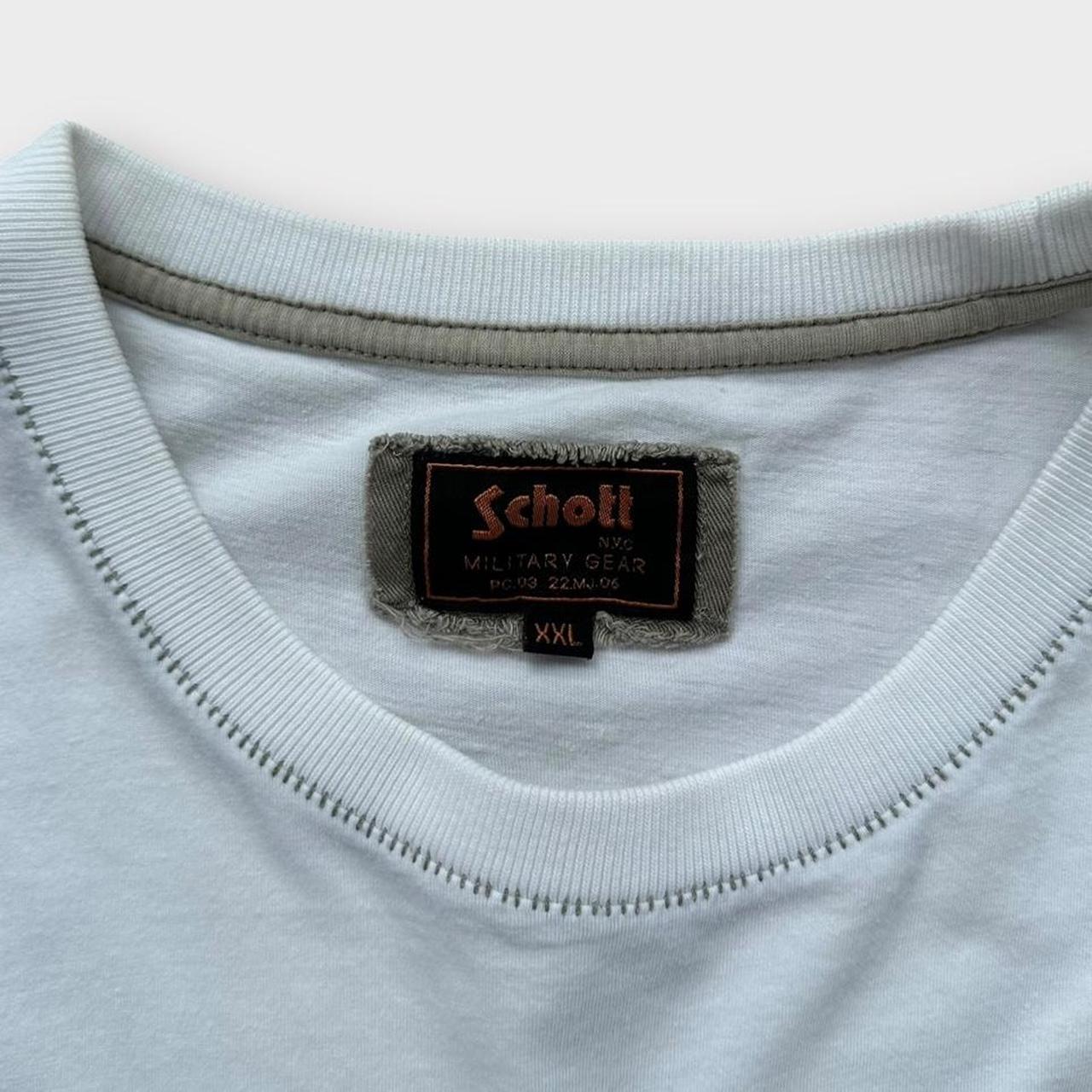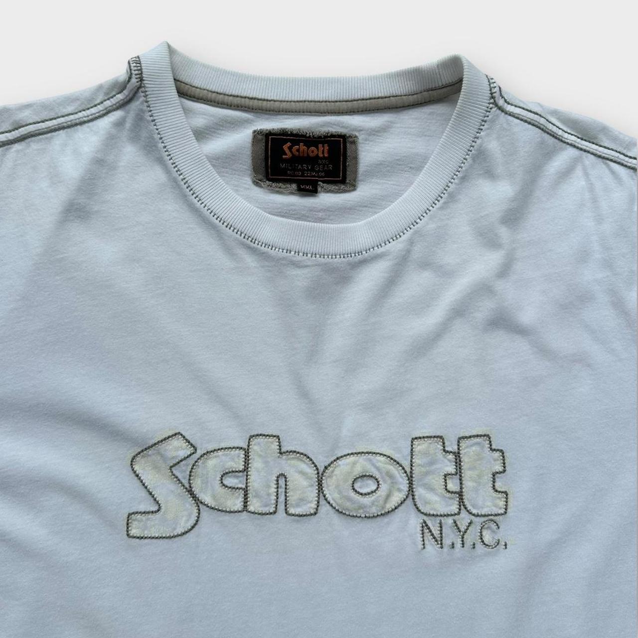 Camiseta vintage Schott de principios de los años 2000 en blanco con estampado y bordado en el pecho