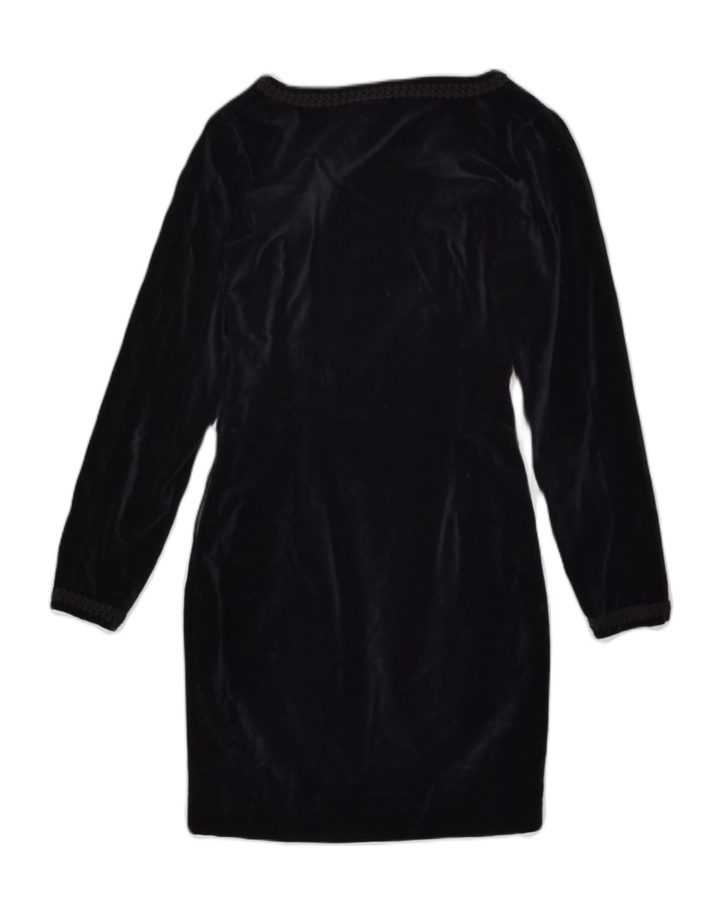 VINTAGE Vestido bodycon de manga larga de terciopelo para mujer Reino Unido 10 Pequeño Negro