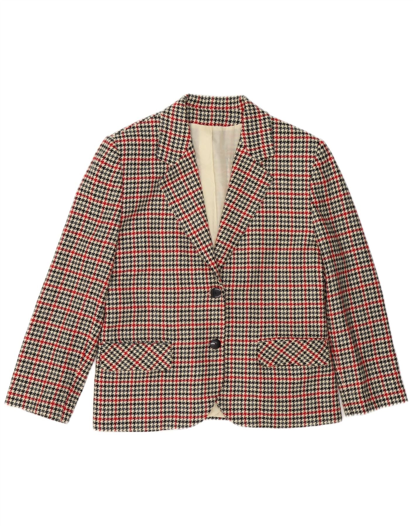 VINTAGE Mujer 2 Botones Blazer Chaqueta Reino Unido 16 Grande Beige Houndstooth