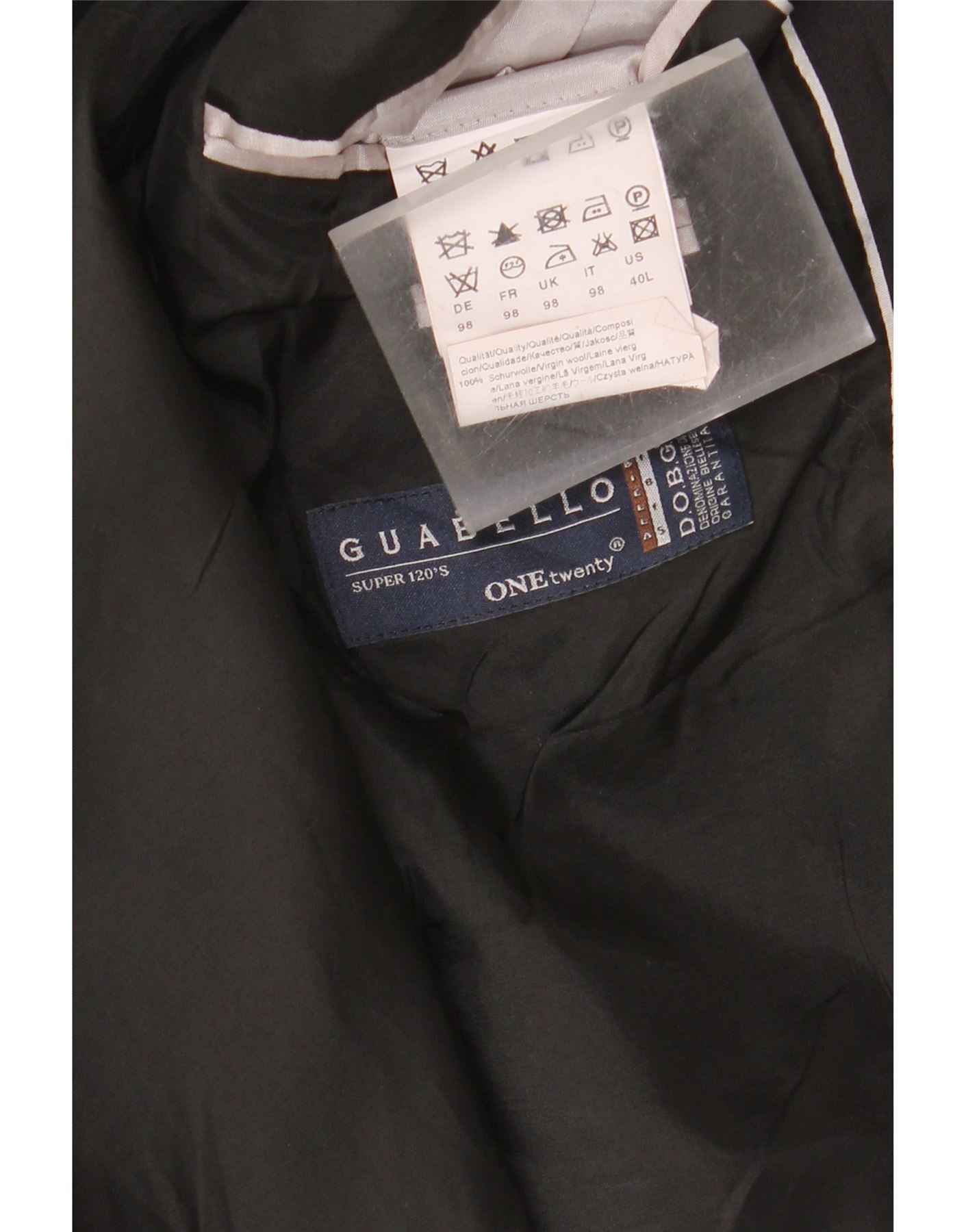 - Instrucciones de lavado: No lavar. No usa blanqueador. No secar en secadora. Planchar a baja temperatura. Limpieza en seco, únicamente con solvente de petróleo.