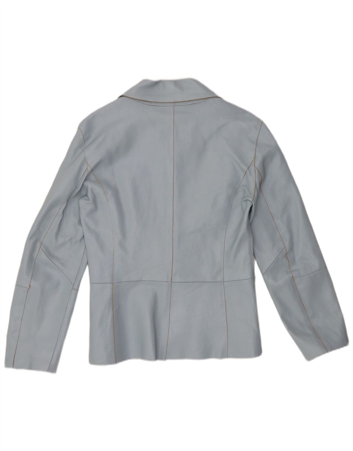 VINTAGE Mujer 2 Botones Cuero Blazer Chaqueta Reino Unido 12 Azul Medio