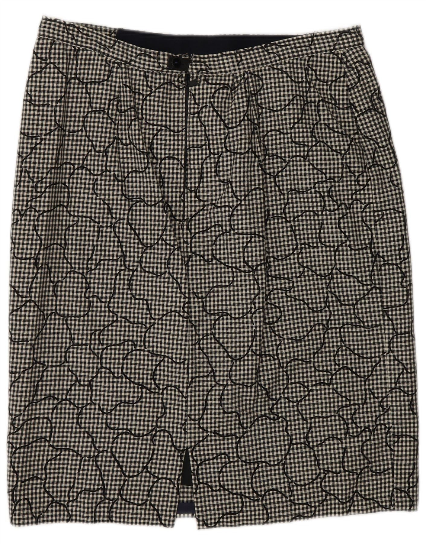 VINTAGE Womens High Waist Pencil Skirt UK 18 XL W30 Grey Gingham Polyester