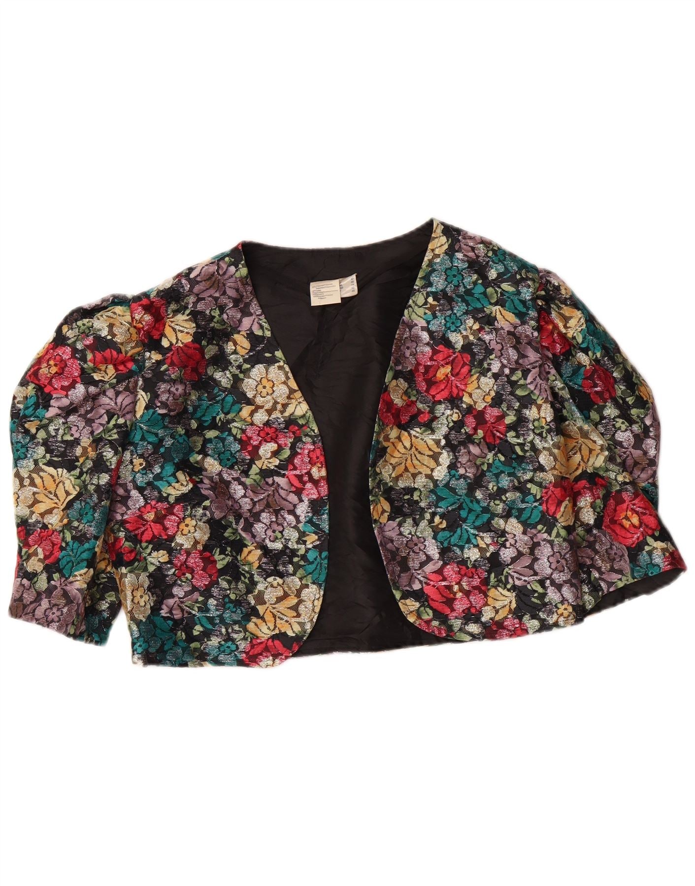 VINTAGE Chaqueta Bolero de manga 3/4 para mujer Reino Unido 14 Floral multicolor medio