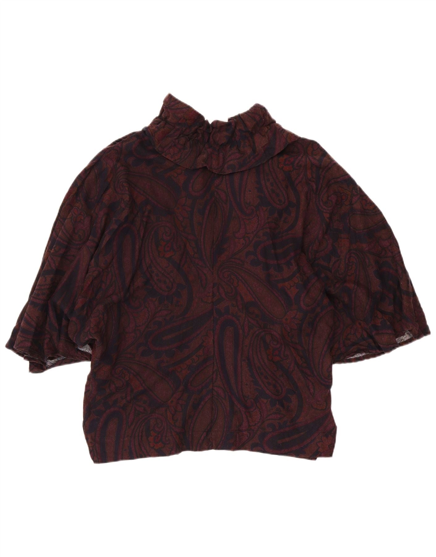 VINTAGE Mujer 3/4 Manga Cardigan Top Reino Unido 16 Grande Borgoña Paisley