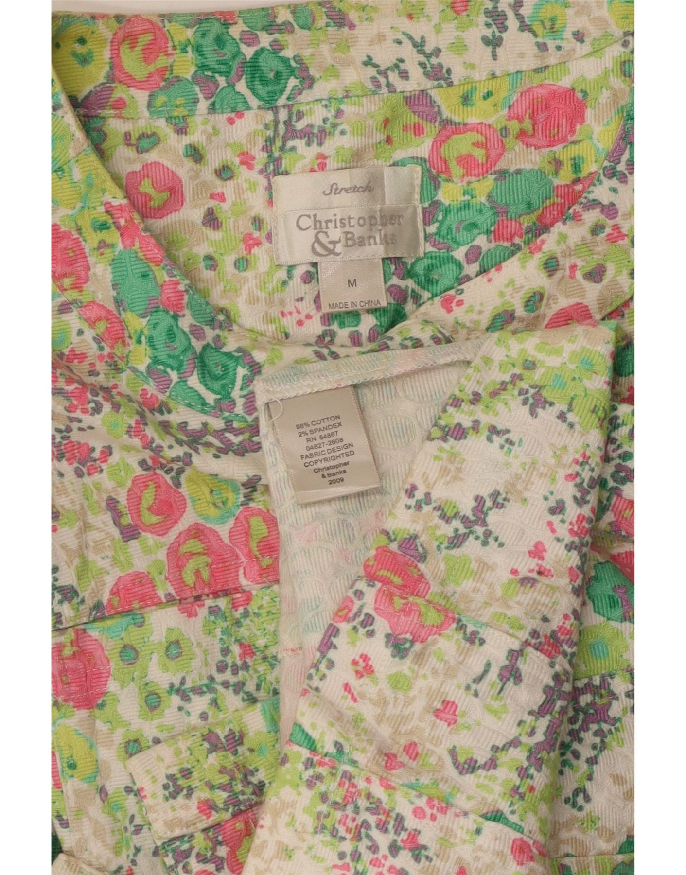 VINTAGE Mujer 3/4 Manga Camisa Blusa Reino Unido 12 Medio Multicolor Floral