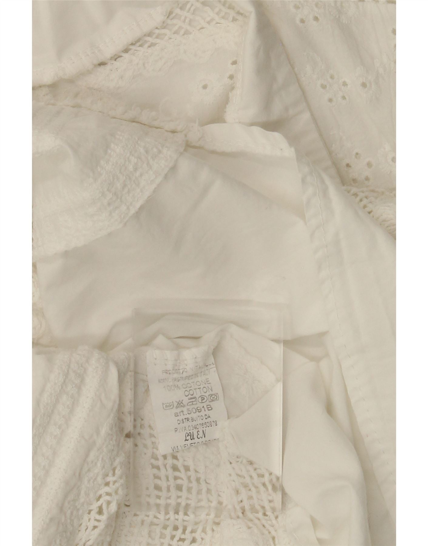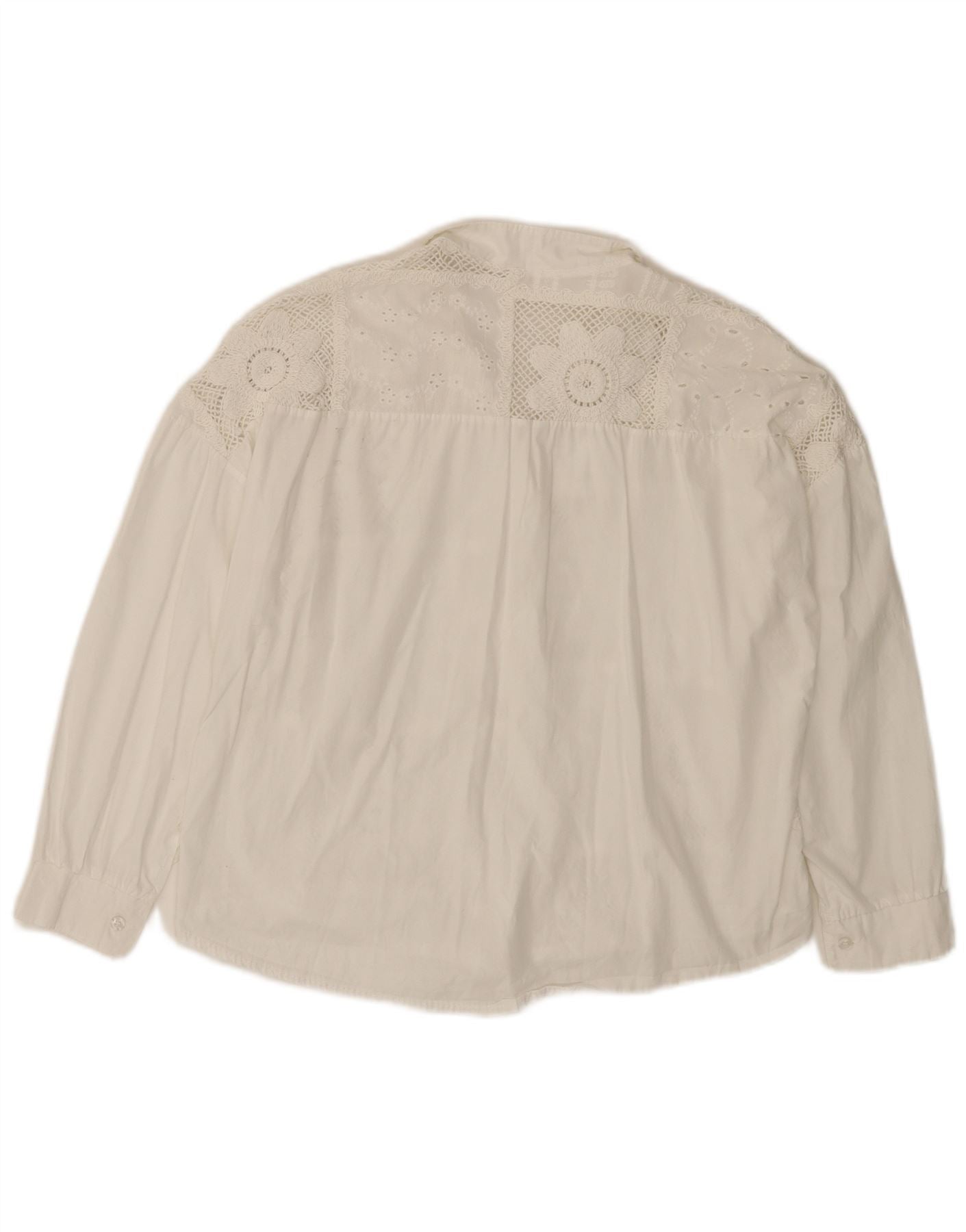 VINTAGE Mujer 3/4 Manga Camisa Blusa Reino Unido 14 Medio Blanco Floral Algodón