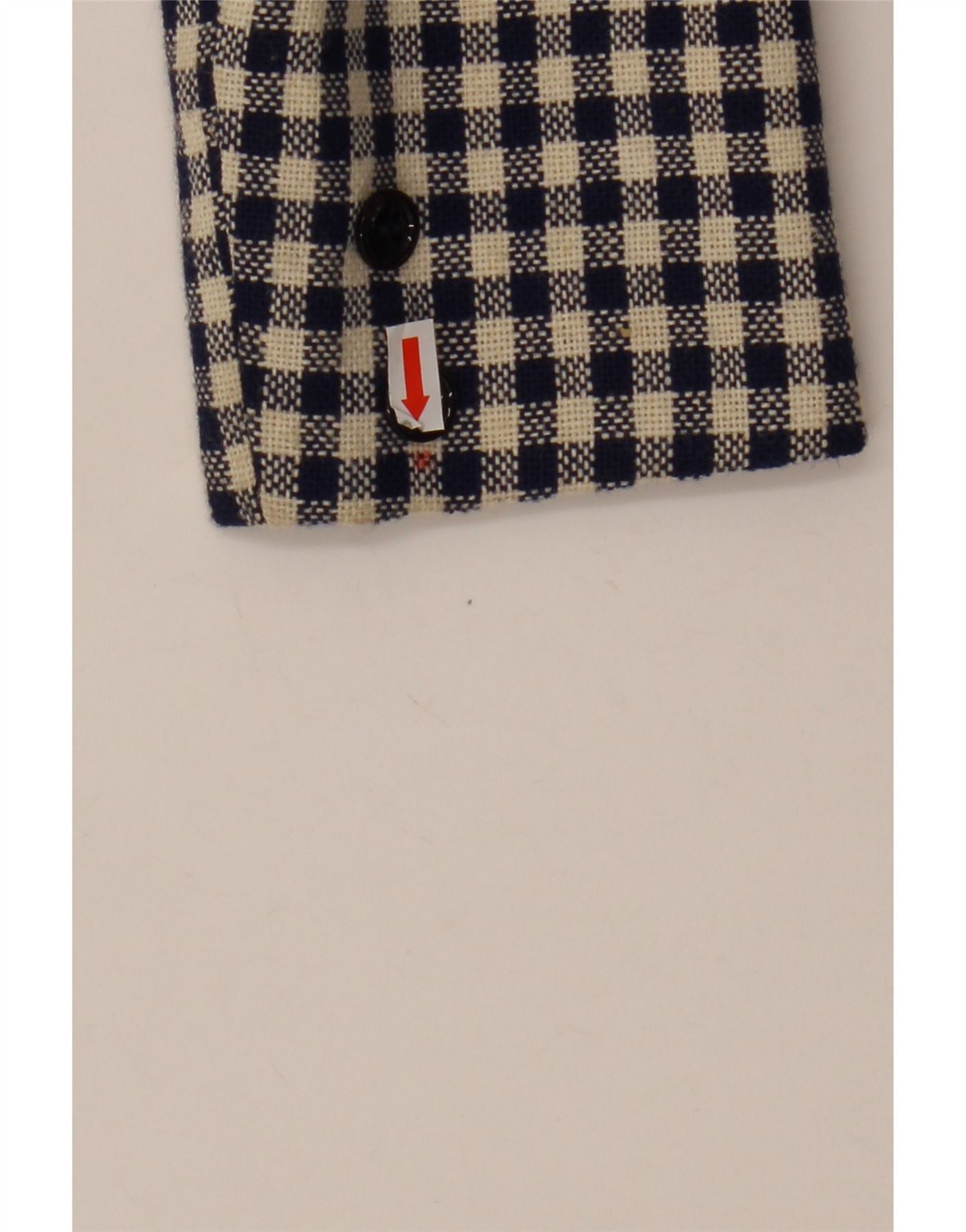 VINTAGE Mujer 3 Botones Blazer Chaqueta Reino Unido 10 Pequeño Azul Marino Gingham
