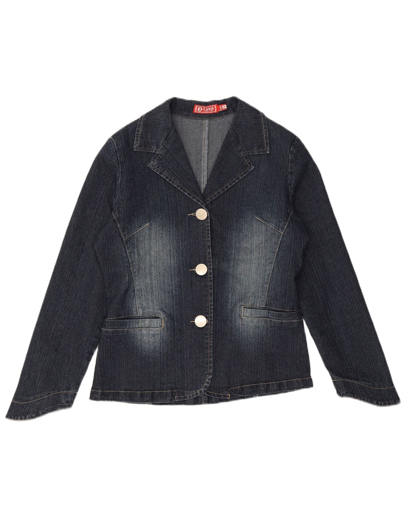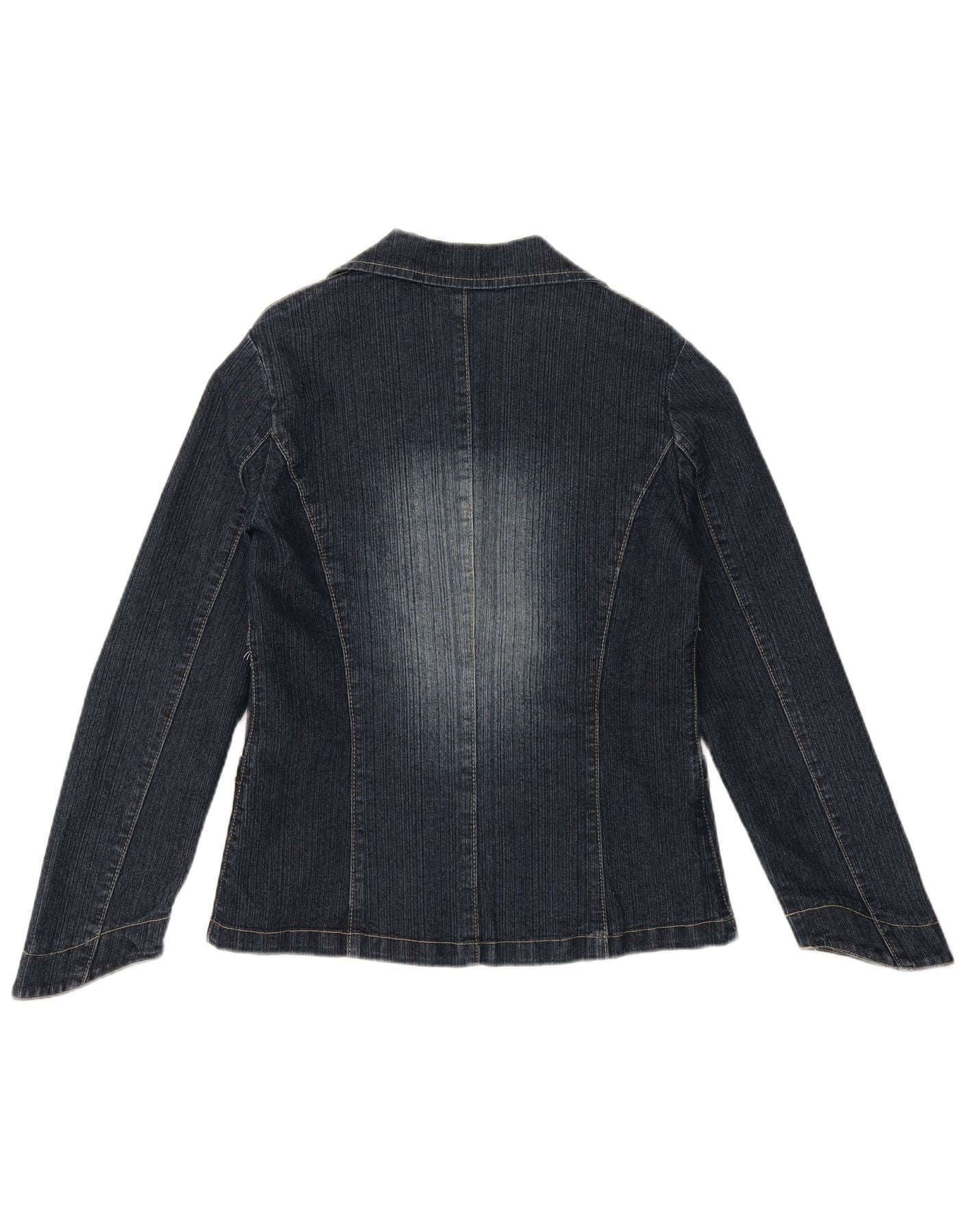 VINTAGE Mujer 3 Botones Denim Blazer Chaqueta Reino Unido 10 Pequeño Algodón Azul Marino
