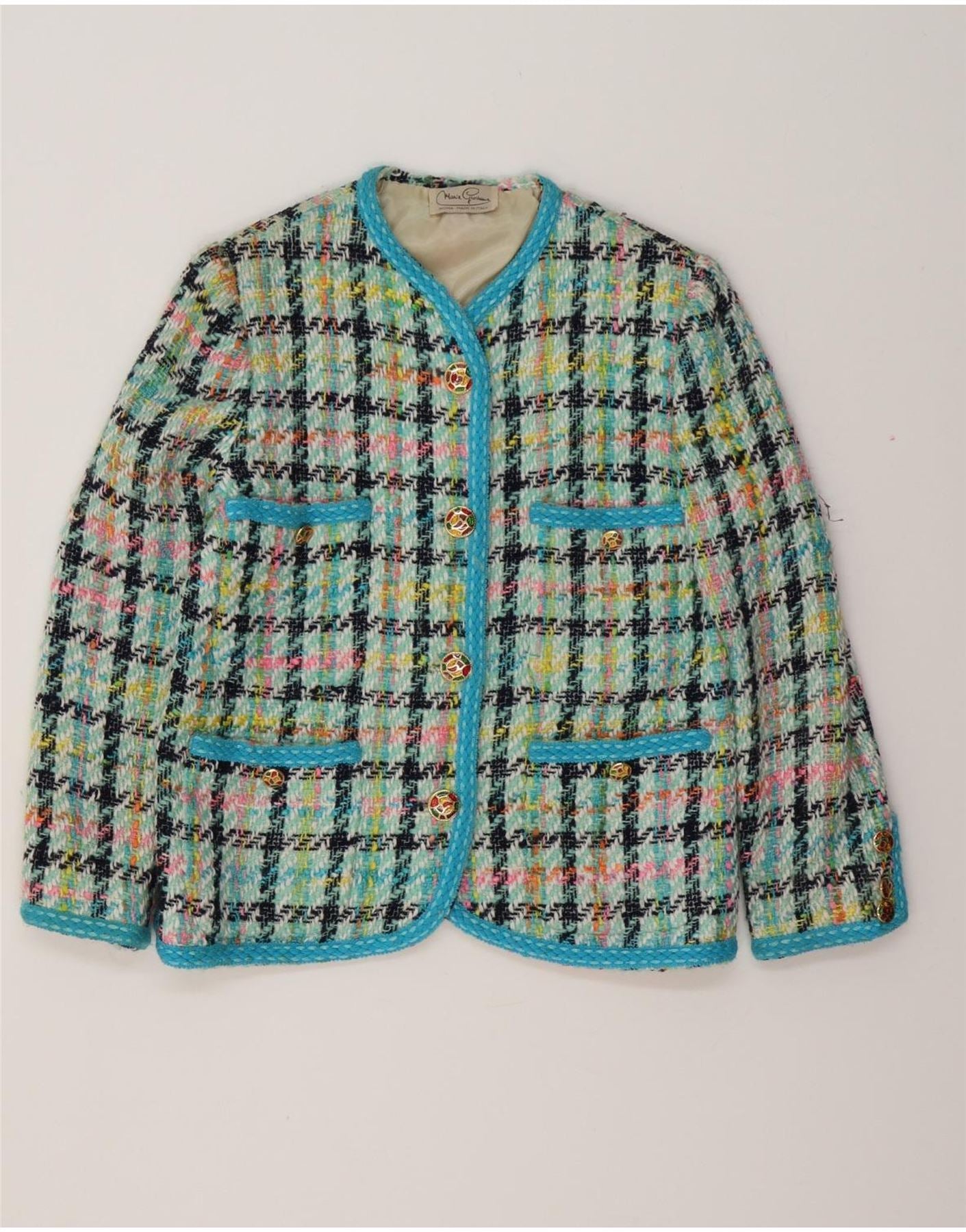 VINTAGE Chaqueta Blazer de 4 Botones para Mujer IT 42 Pata de Gallo Turquesa Mediana