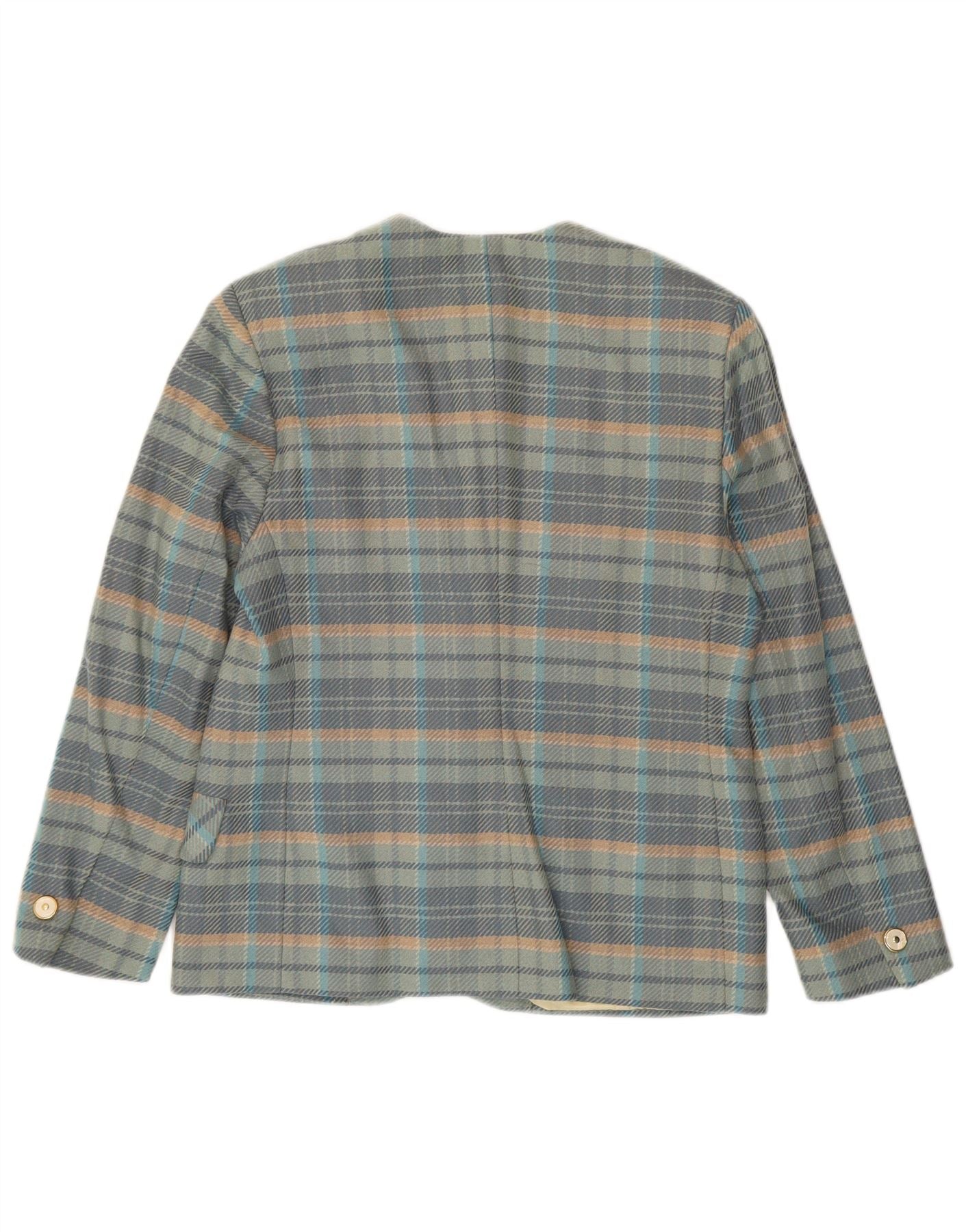 Vintage mujer 5 botones Blazer chaqueta IT 44 lana de cuadros azul medio