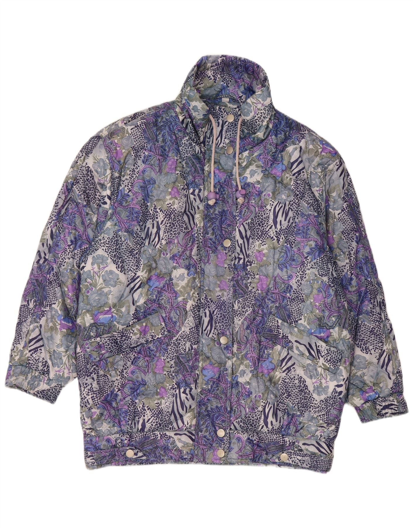 VINTAGE Mujer Patrón Abstracto Chaqueta Bomber Reino Unido 14 Medio Multicolor