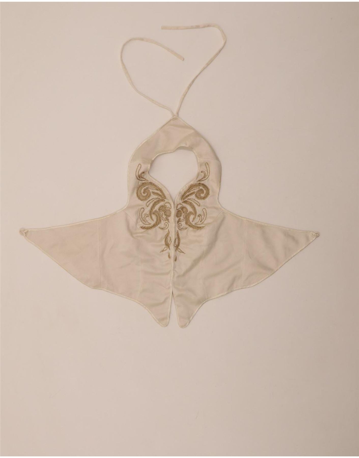 VINTAGE Mujeres Patrón Abstracto Crop Halter Top Reino Unido 12 Blanco Medio