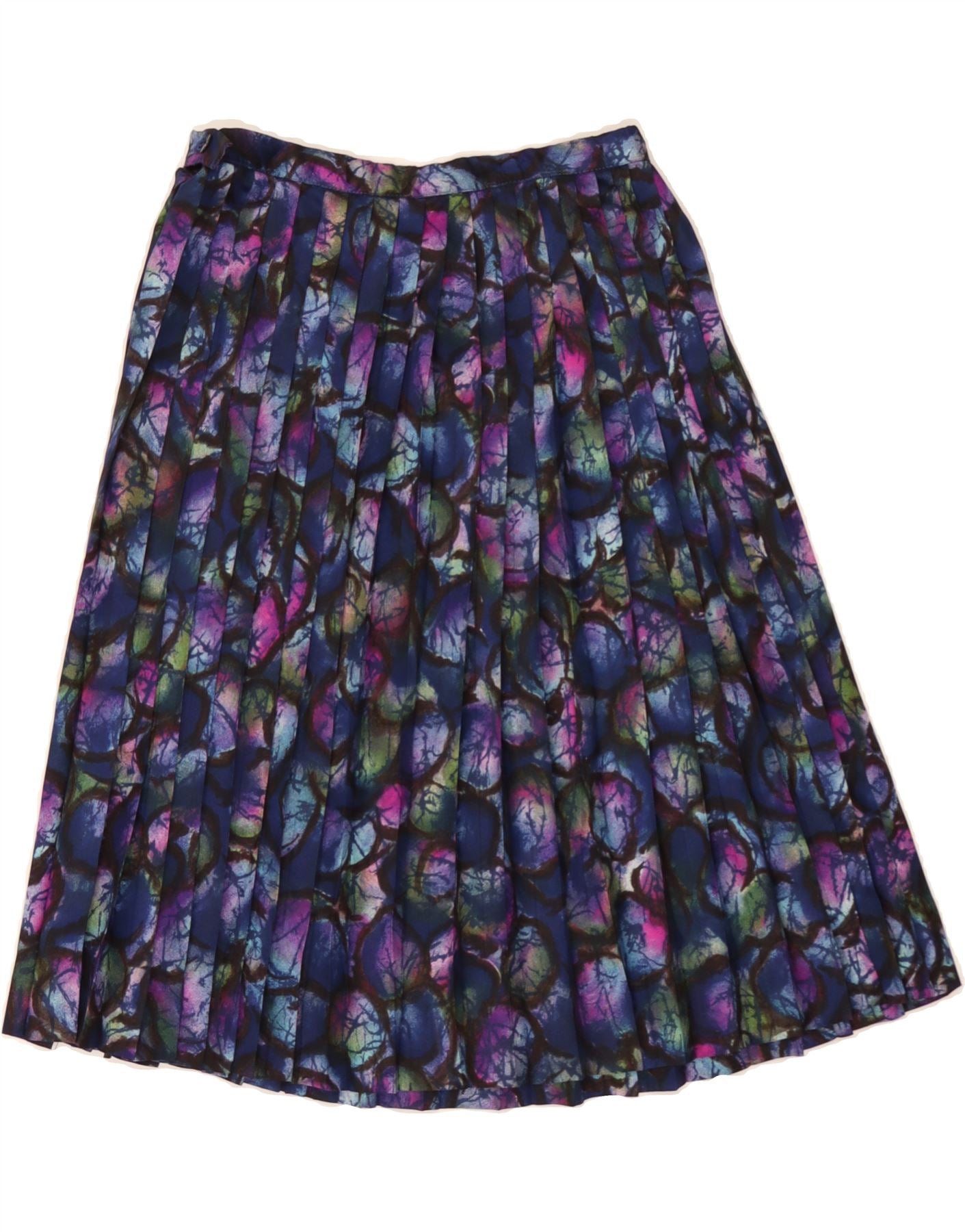 VINTAGE Womens Abstract Pattern Knife Pleated Skirt W30 Medium Navy Blue