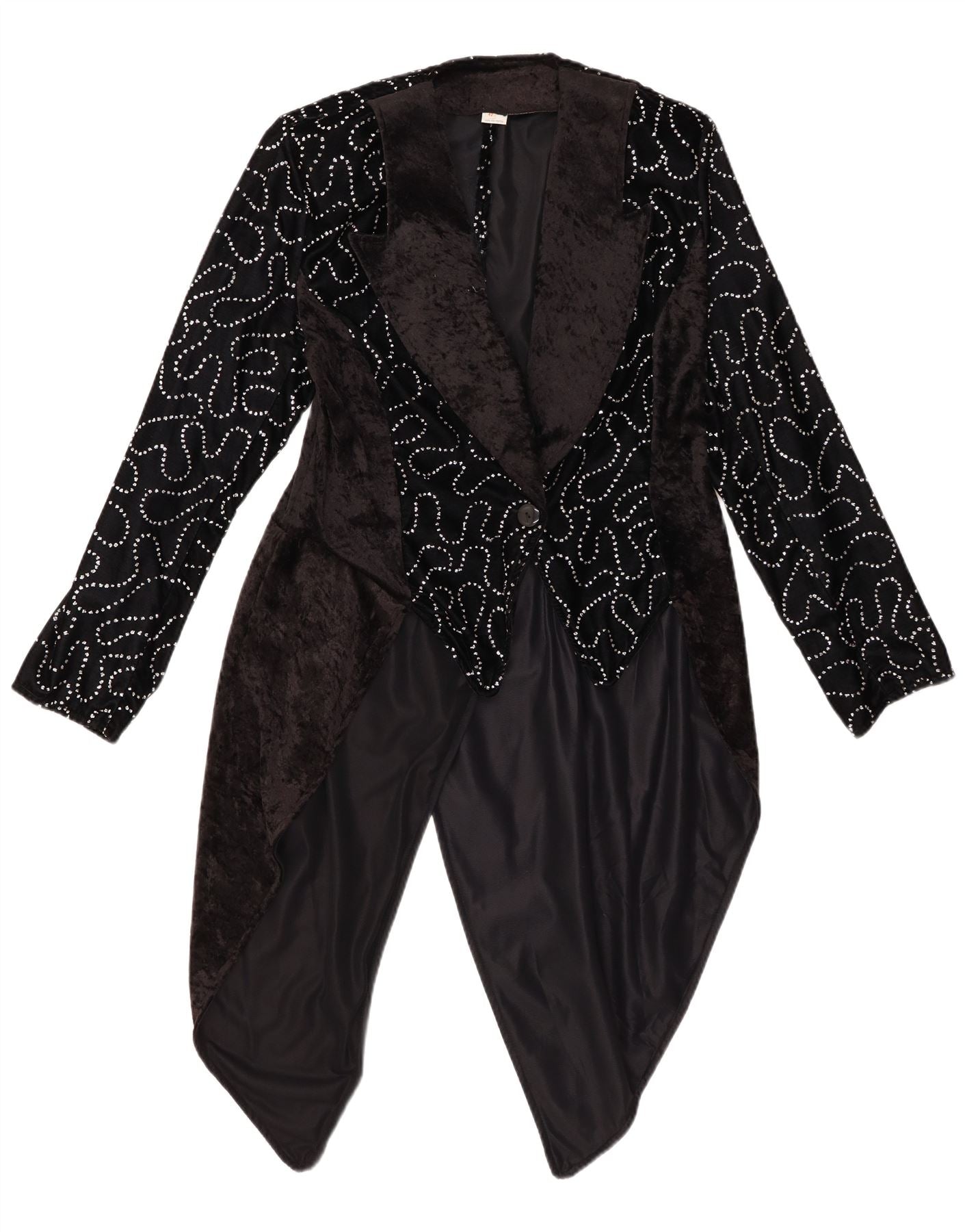 VINTAGE Mujer Patrón Abstracto Tailcoat Blazer Chaqueta IT 42 Medio Negro