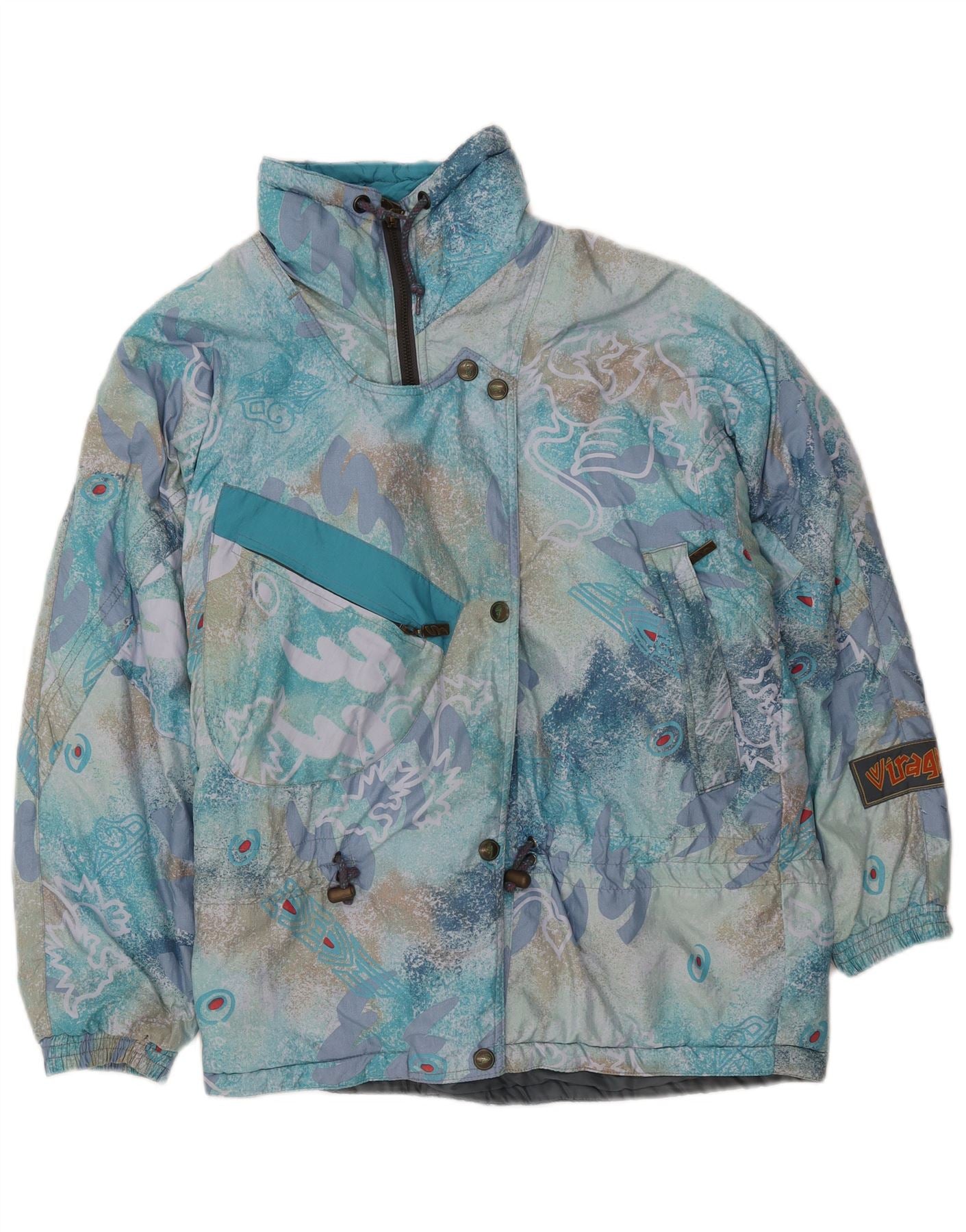 VINTAGE Chaqueta cortavientos con patrón abstracto para mujer IT 42 Azul medio