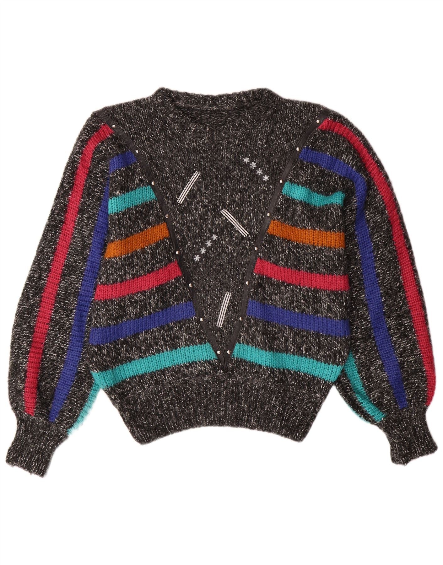 VINTAGE Mujer Batwing Crew Neck Jumper Suéter Reino Unido 14 Rayas Gris Medio
