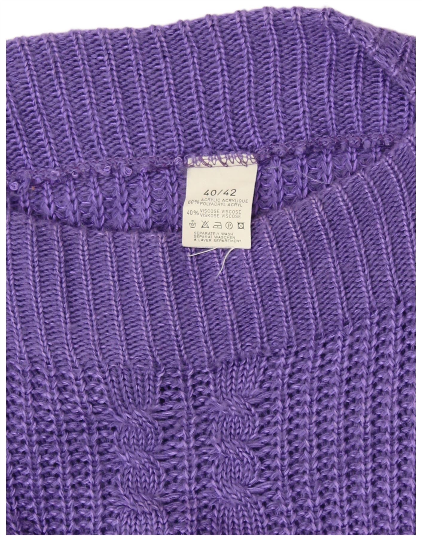 VINTAGE Mujer Barco Cuello Jersey Suéter EU 40/42 Acrílico Púrpura Medio