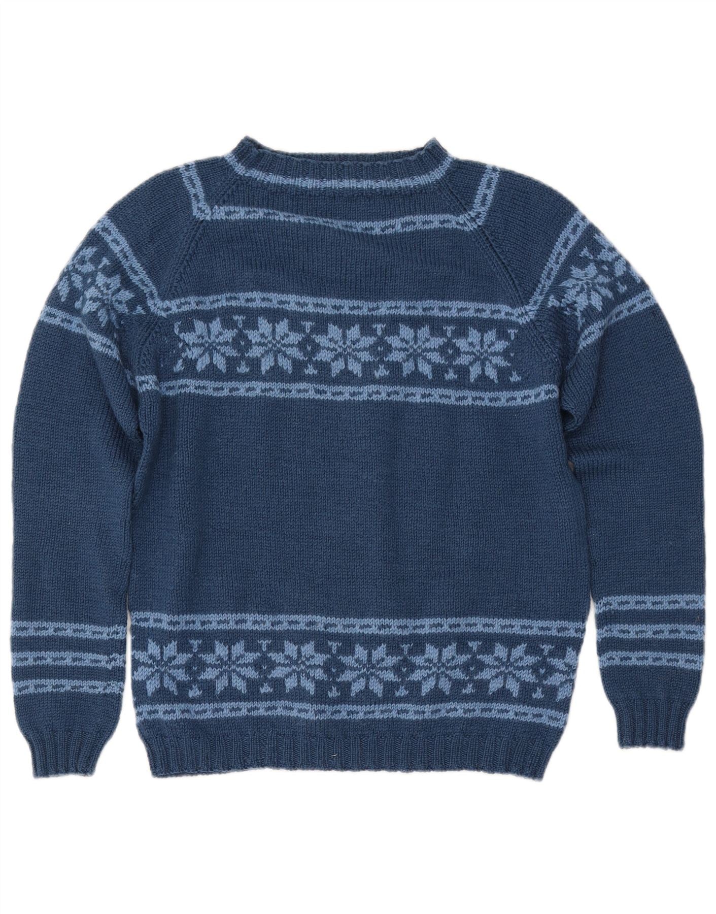 VINTAGE Mujer Barco Cuello Jersey Suéter Reino Unido 12 Medio Azul Marino Fair Isle