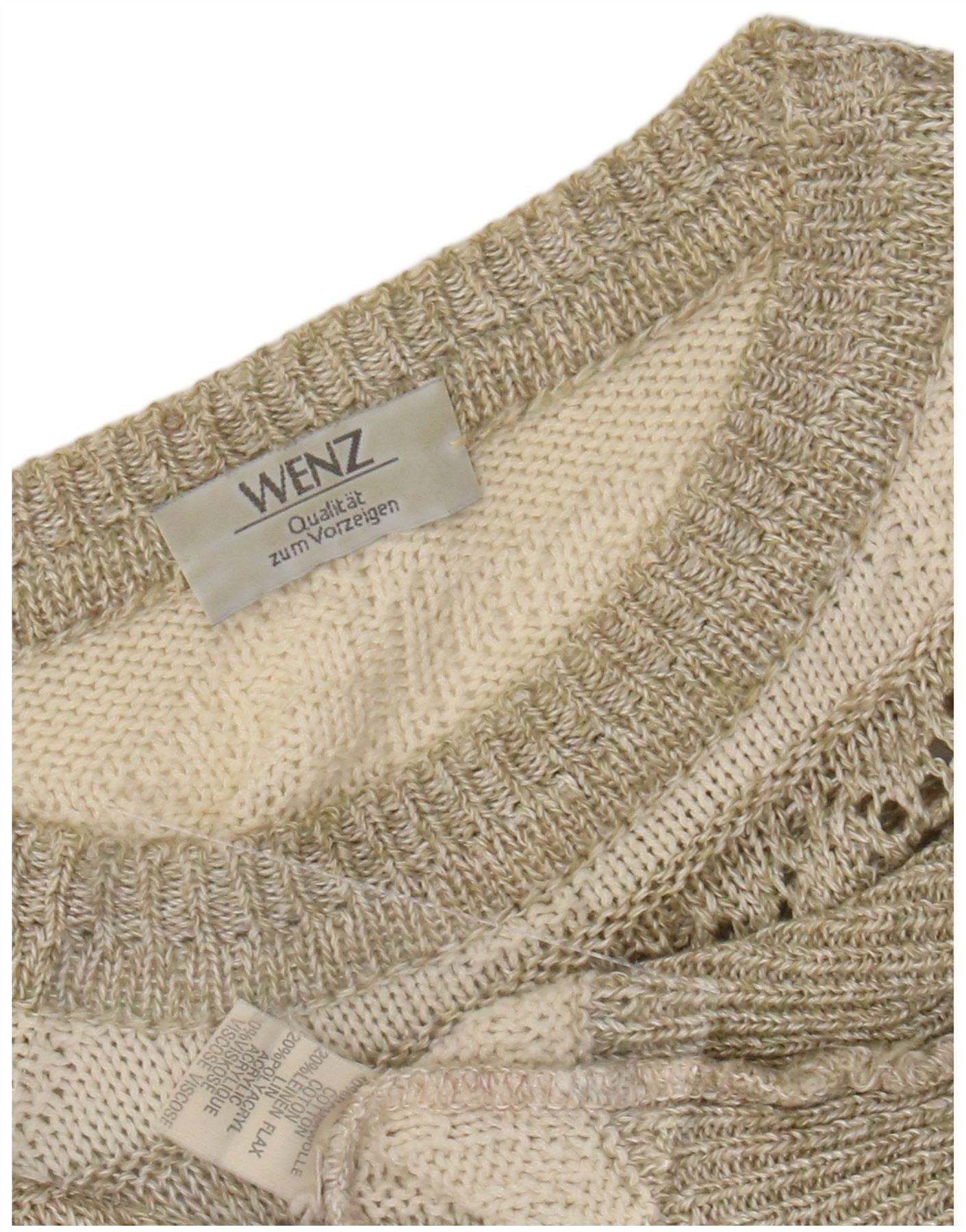 VINTAGE Mujer Barco Cuello Jersey Suéter Reino Unido 14 Algodón Rayado Beige Grande