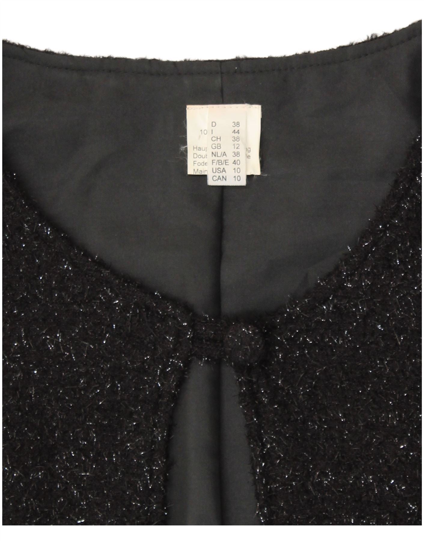 VINTAGE Mujer Bolero Chaqueta Reino Unido 12 Medio Negro Flecked Nylon