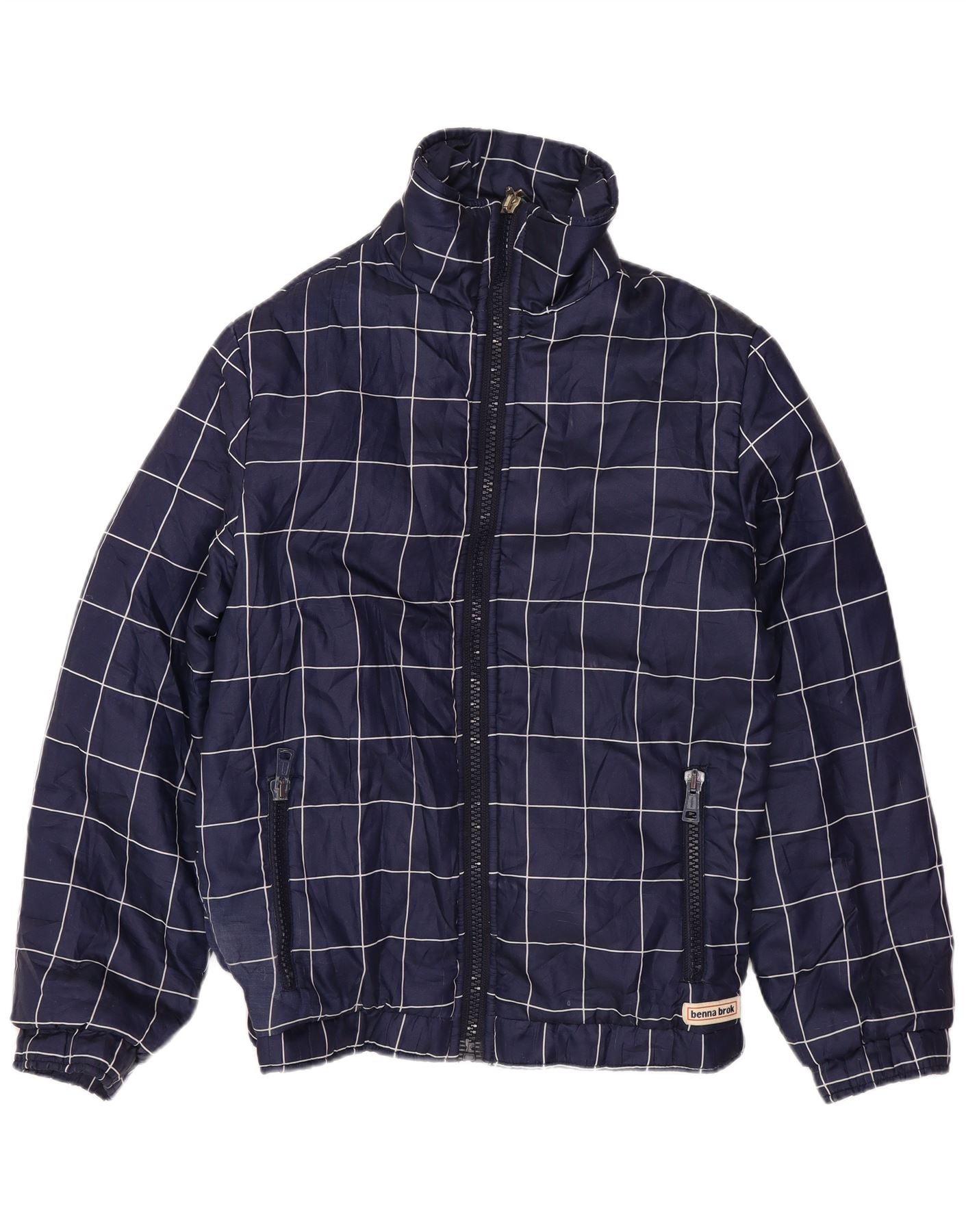 VINTAGE Mujer Bomber Chaqueta Reino Unido 14 Grande Azul Marino Check