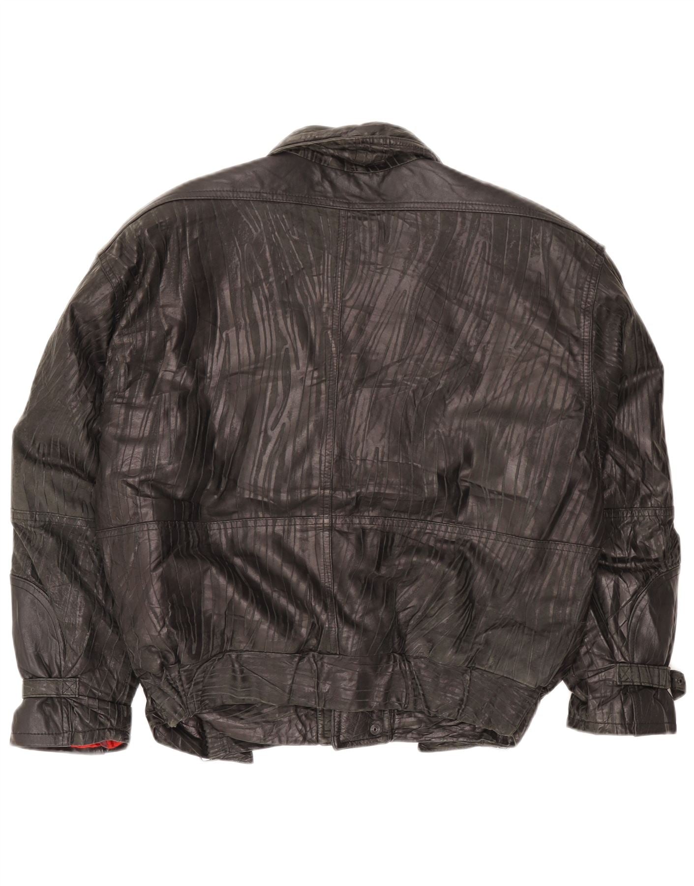Vintage mujer bombardero chaqueta de cuero IT 54 3XL negro a rayas