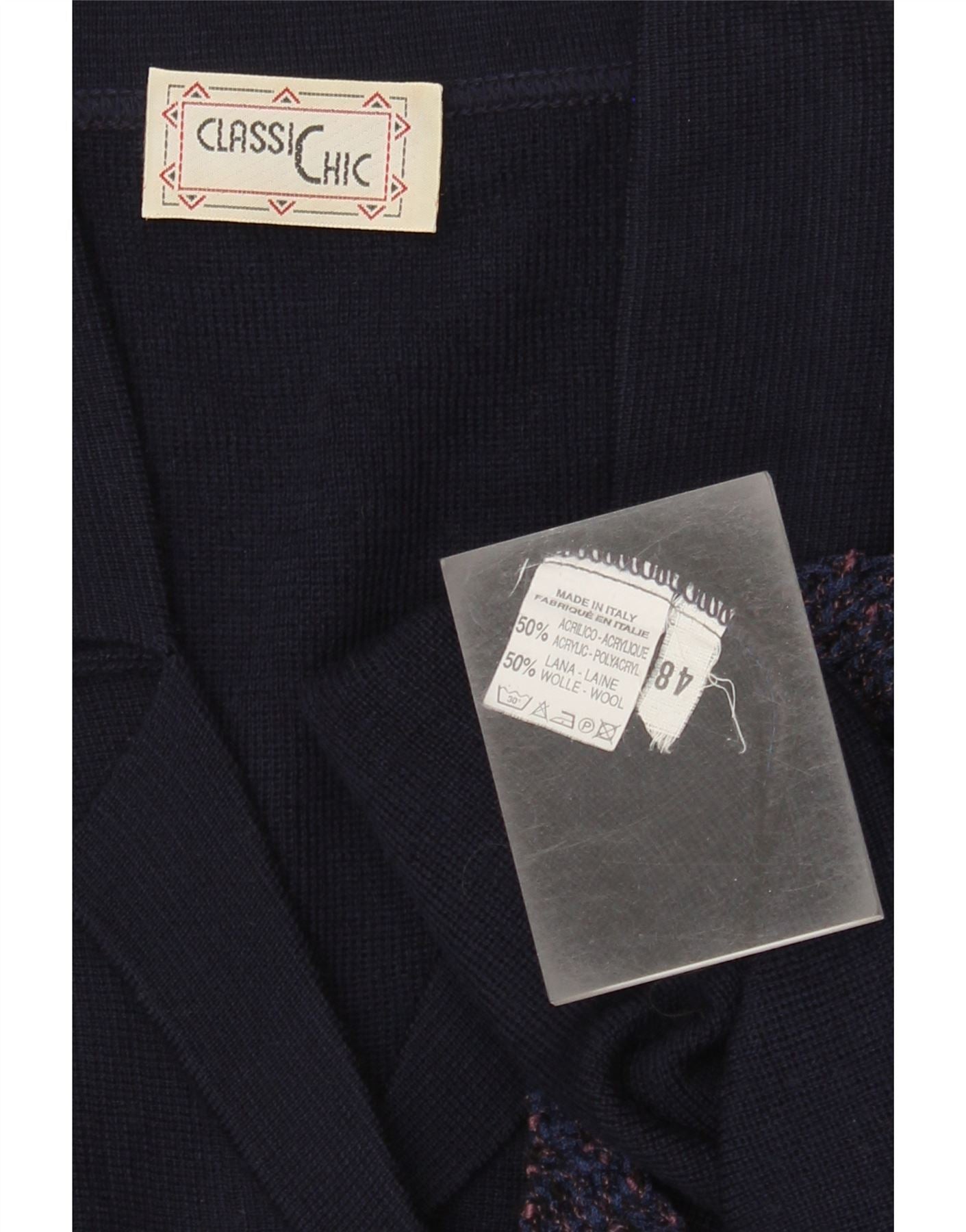 Vintage mujer Cardigan suéter IT 48 XL azul marino acrílico