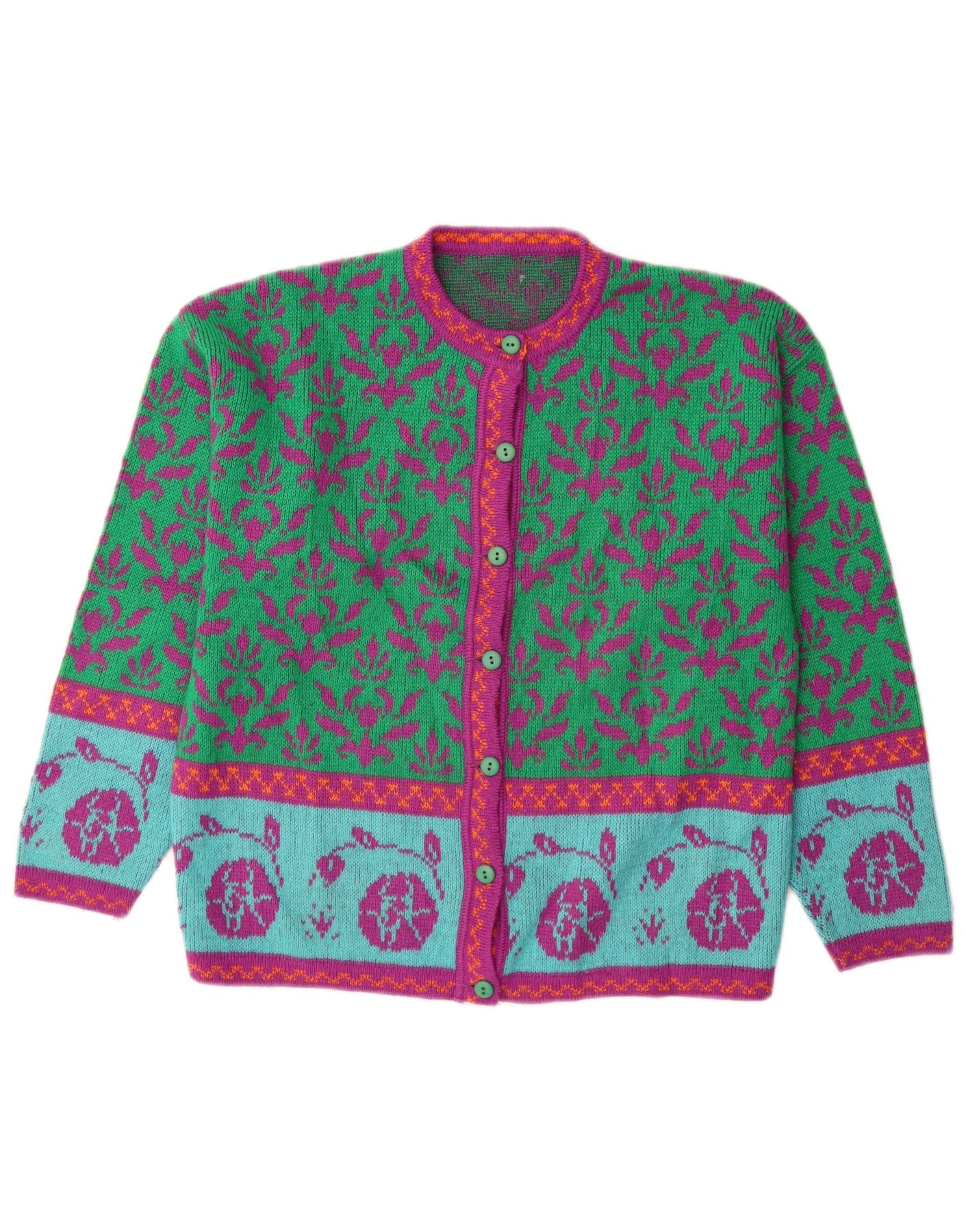 VINTAGE Mujer Cardigan Suéter Reino Unido 14 Lana Floral Verde Medio