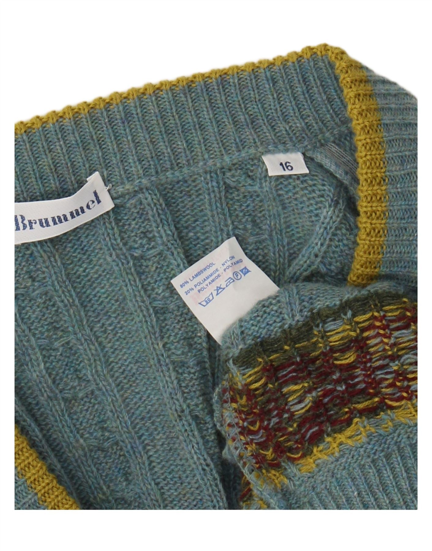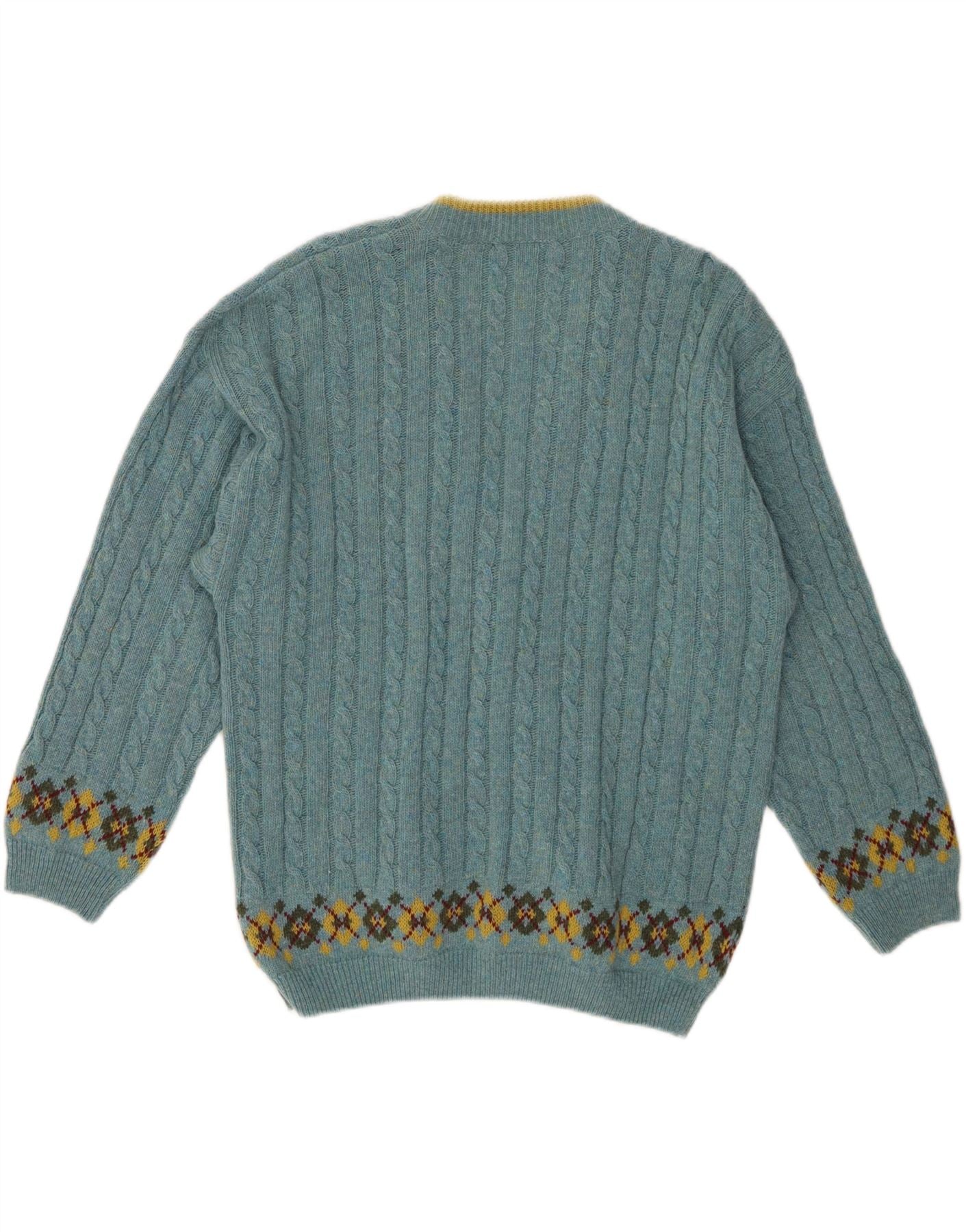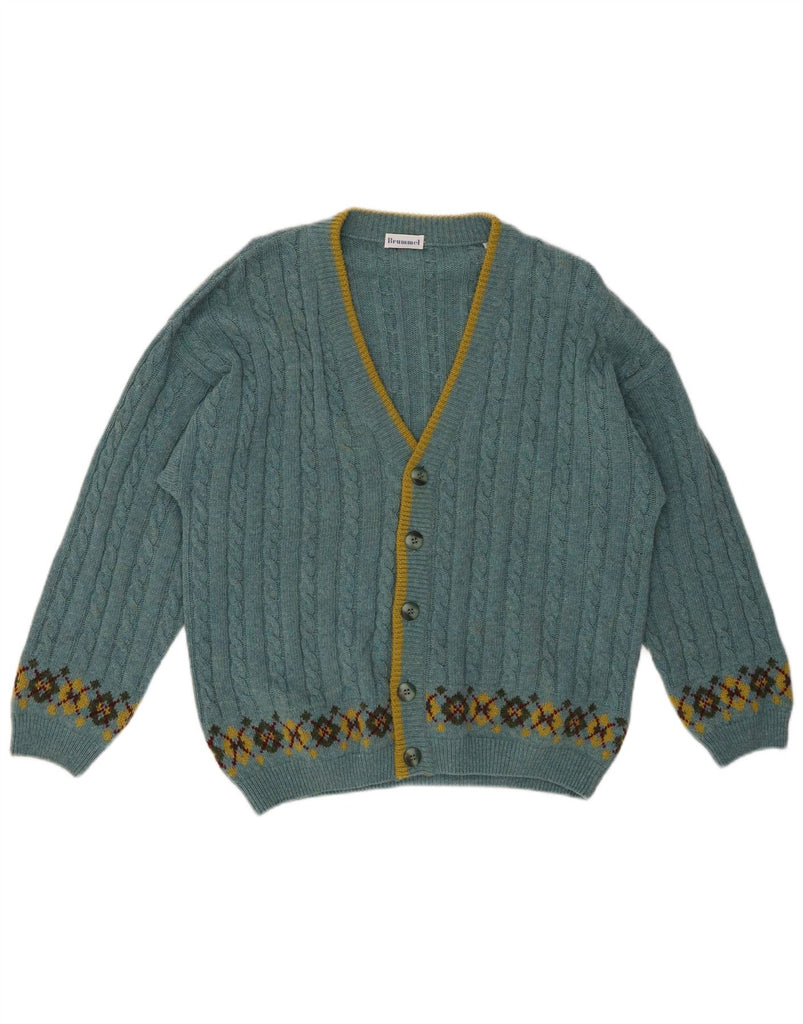 VINTAGE Suéter cárdigan para mujer Reino Unido 16 Lana azul grande Fair Isle