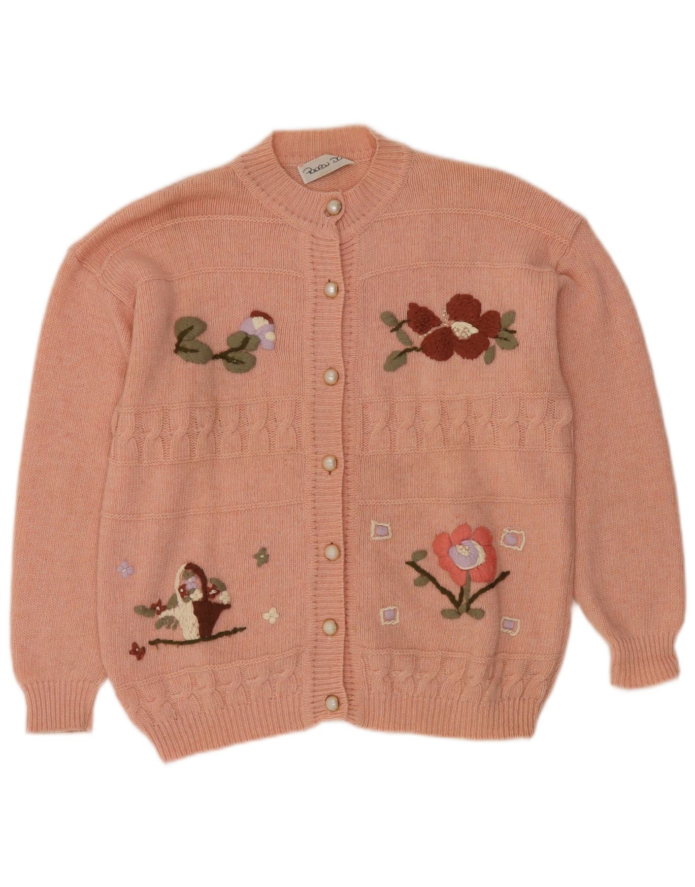 VINTAGE suéter cárdigan para mujer Reino Unido 16 lana floral rosa grande