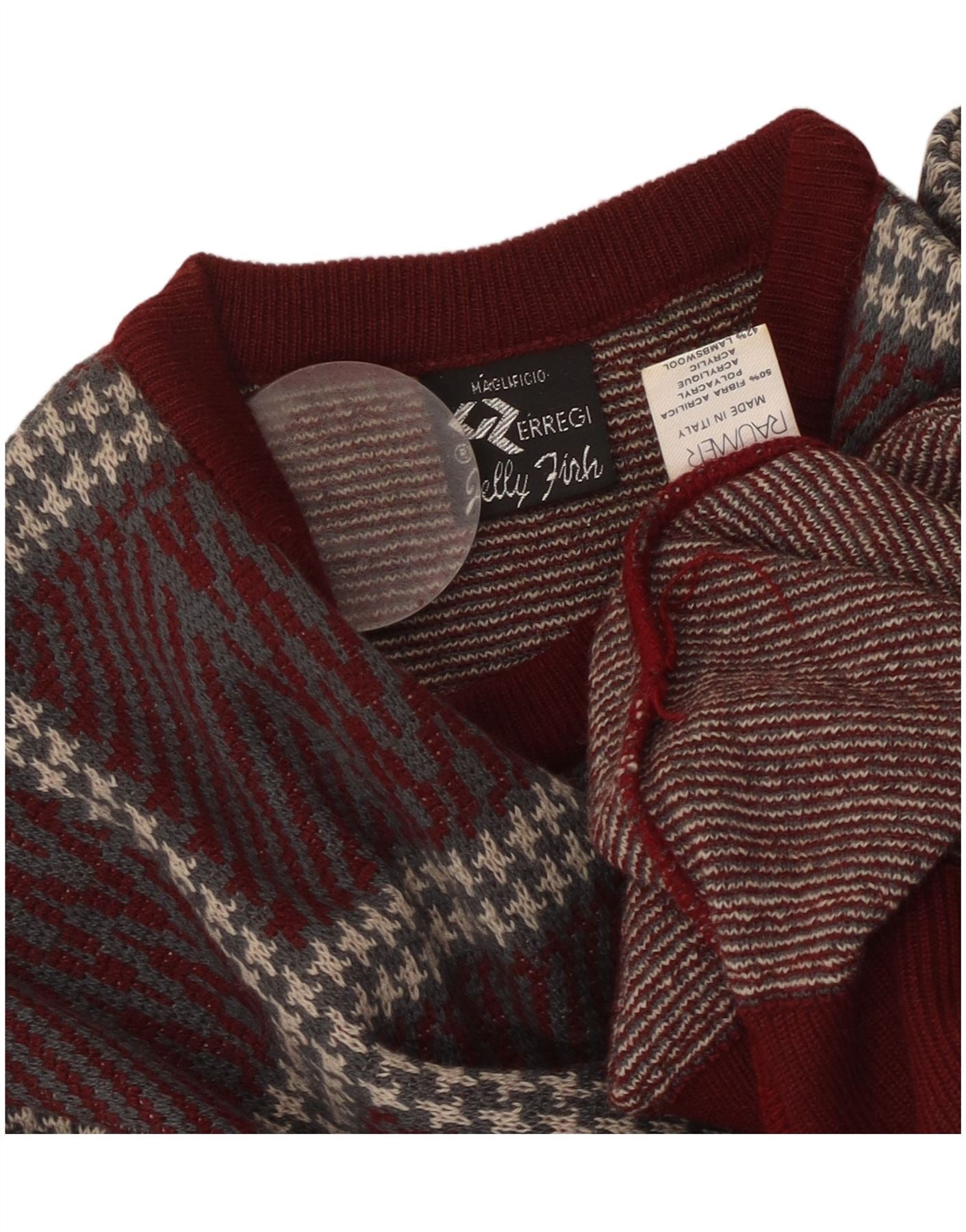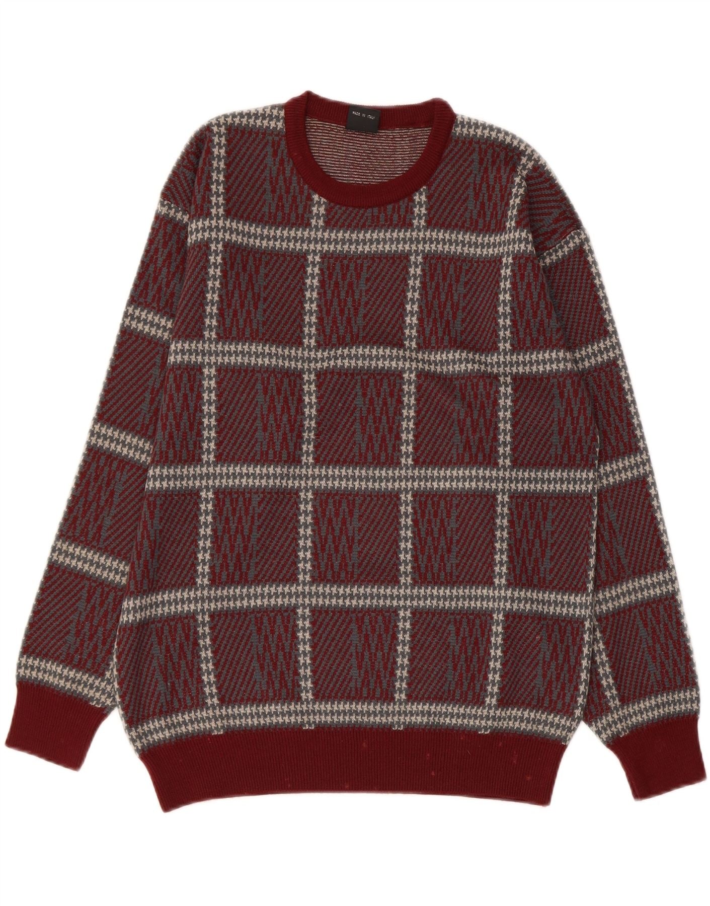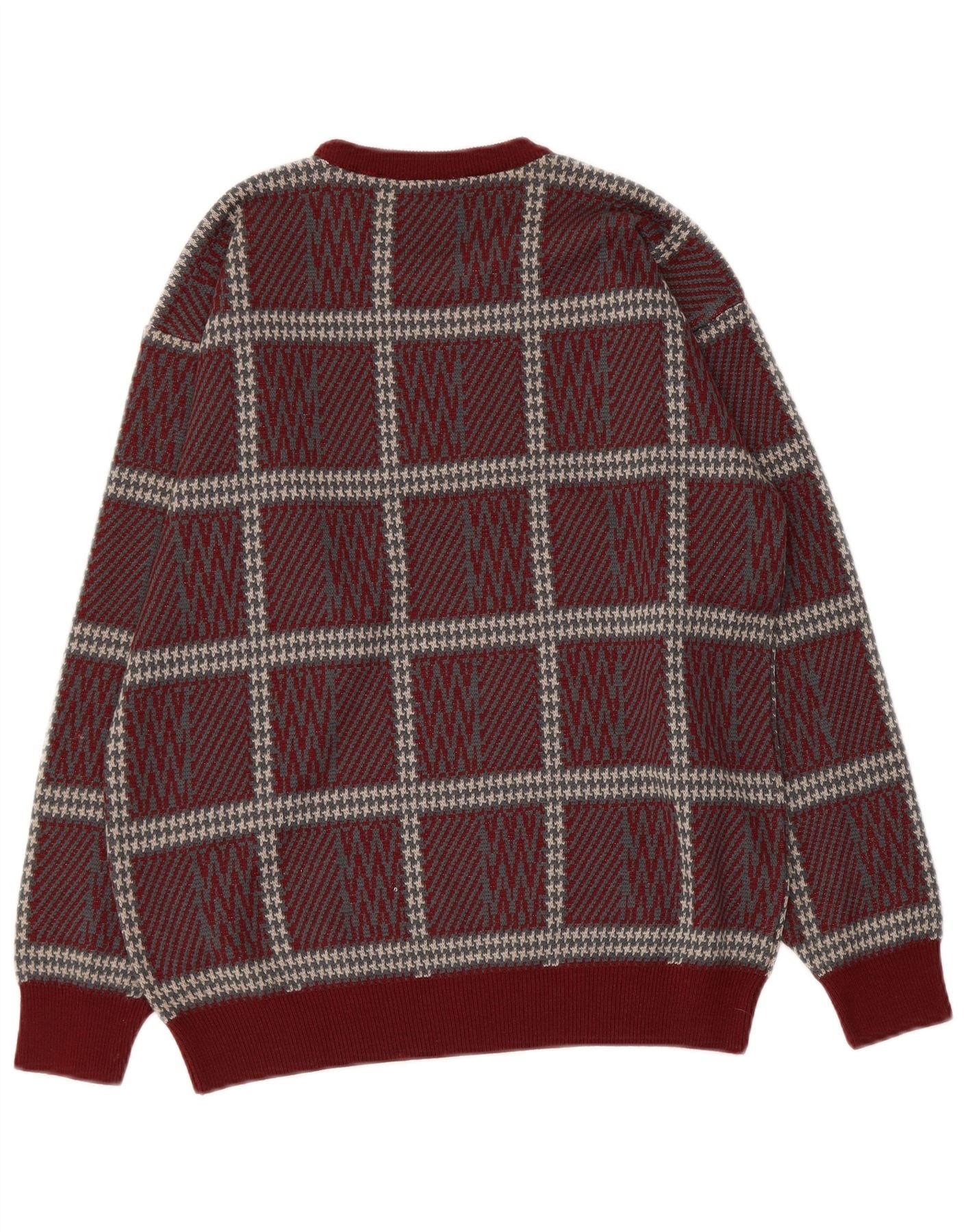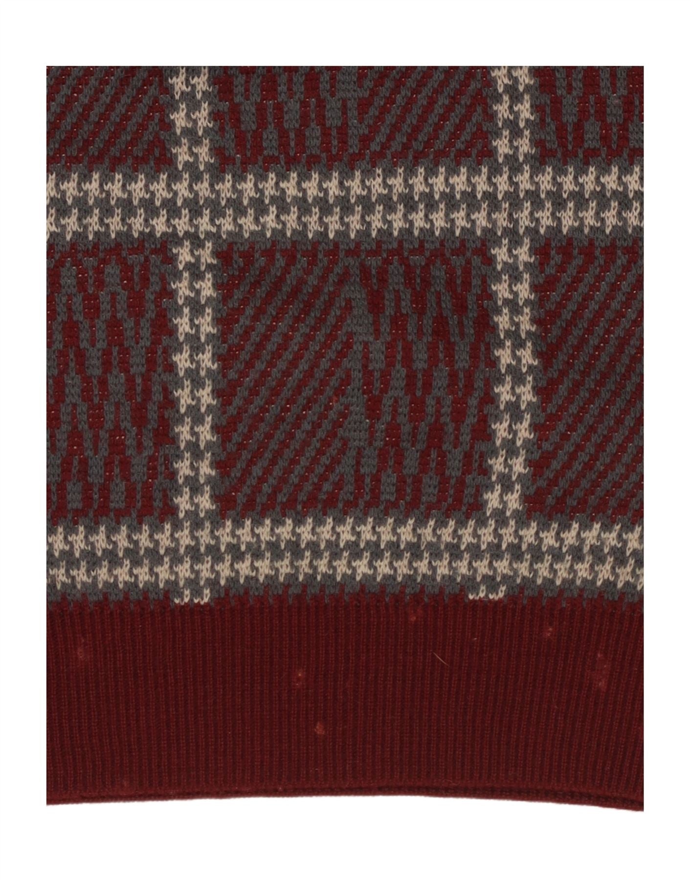 VINTAGE Mujer Crew Neck Jumper Suéter Reino Unido 14 Grande Borgoña Check Acrílico